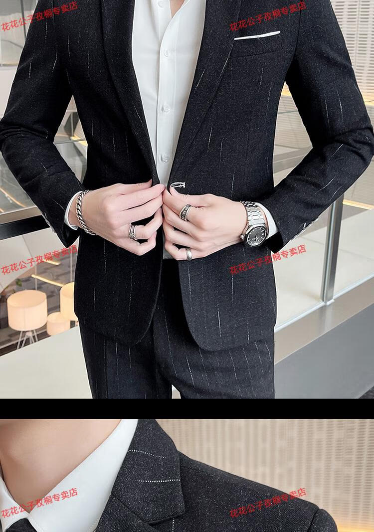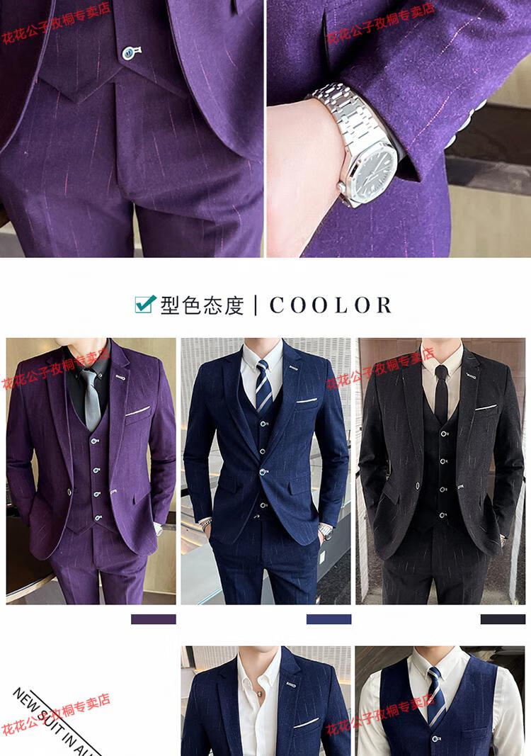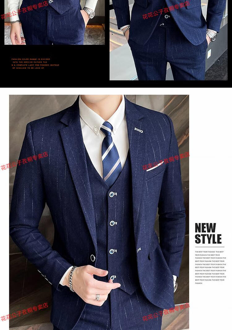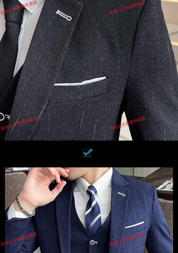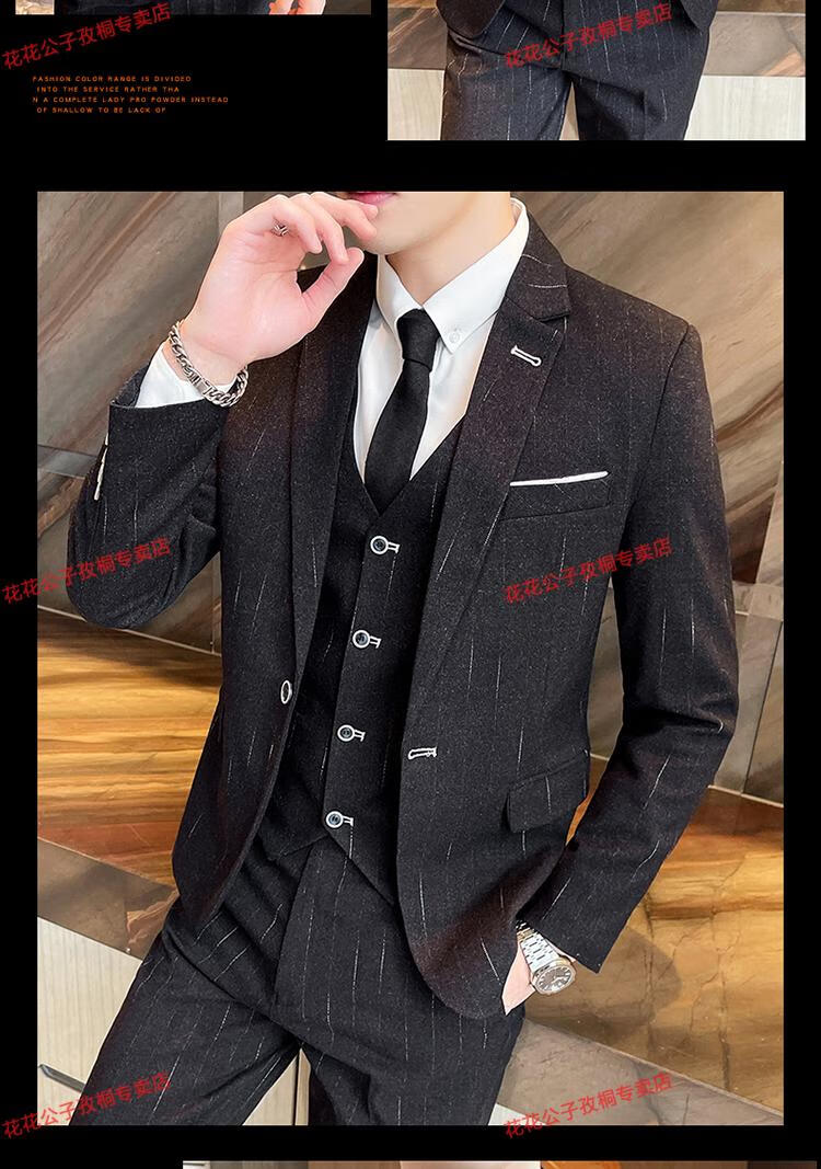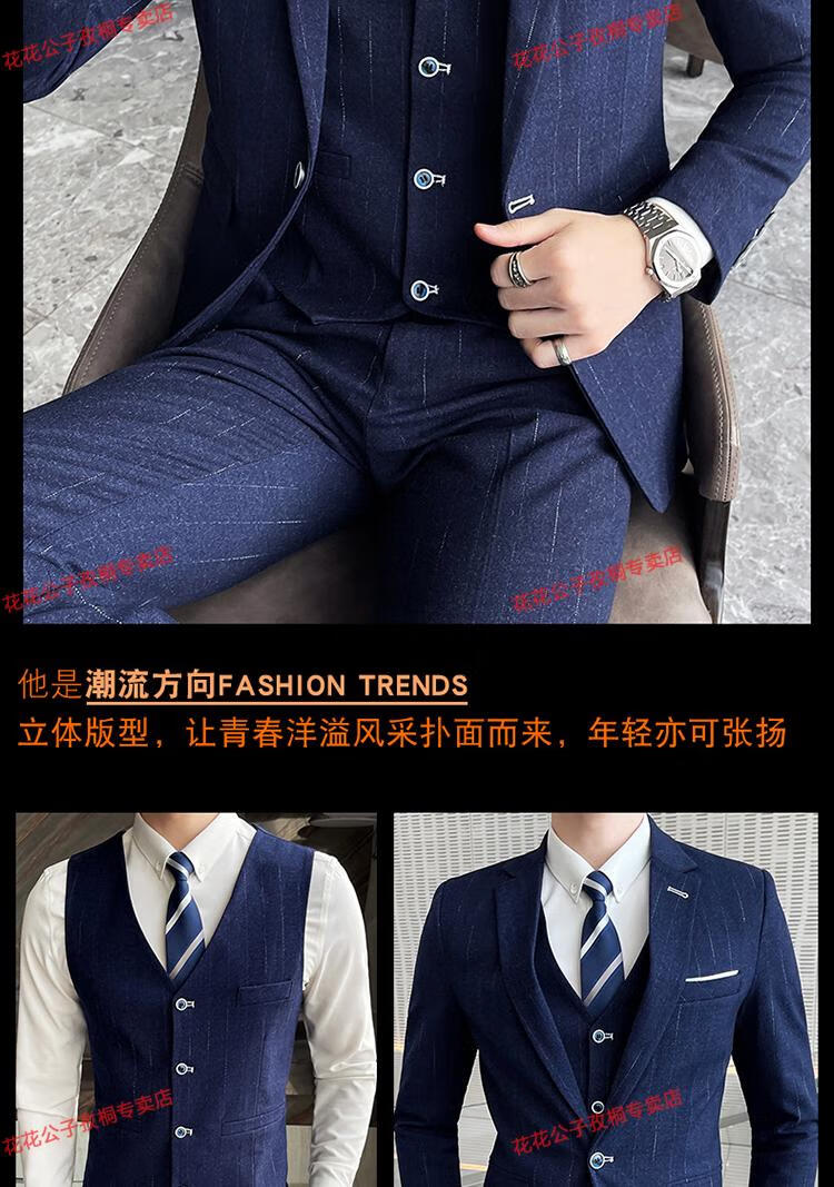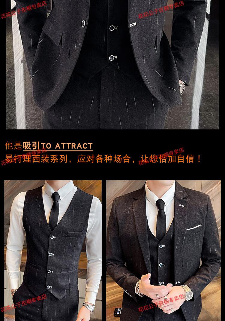 花花公子西服男套装韩版修身新郎伴郎结婚潮流职业暗纹西装三件套正装礼服 A7700黑色 西服+马甲+西裤+送衬衫 领带领结 L (100-125斤)