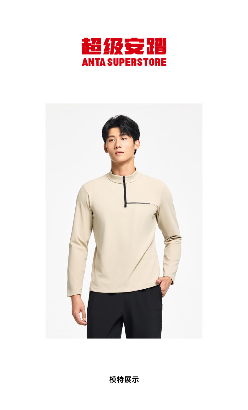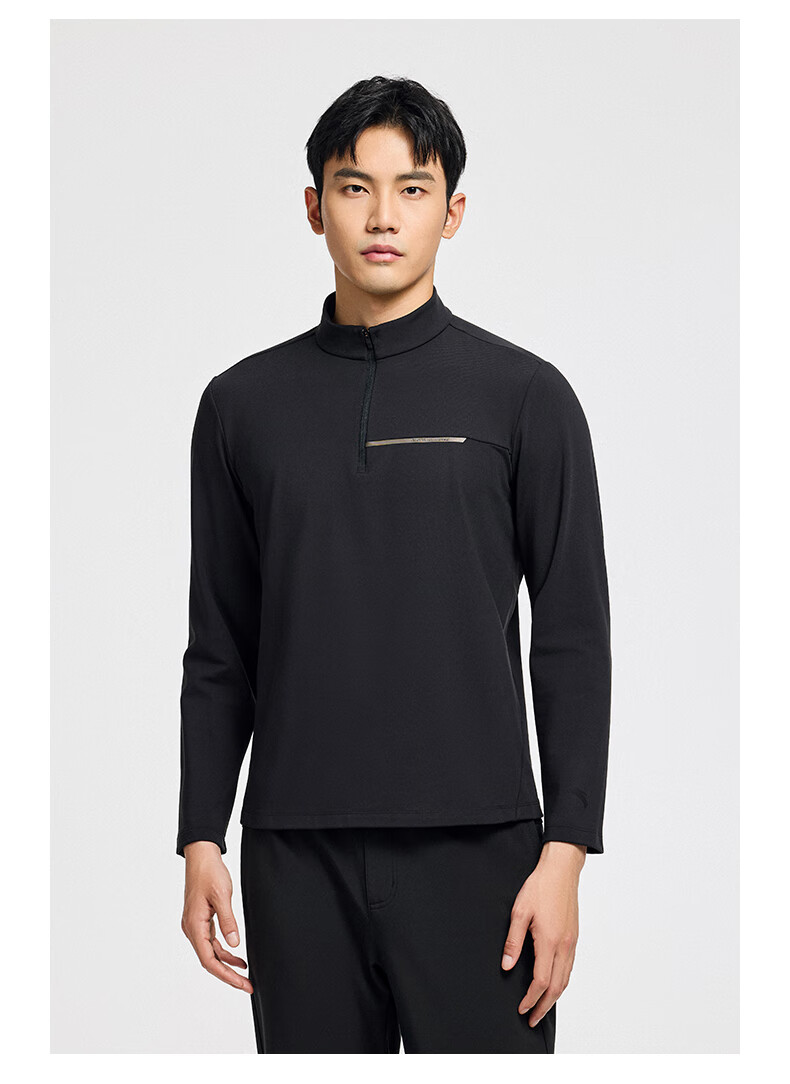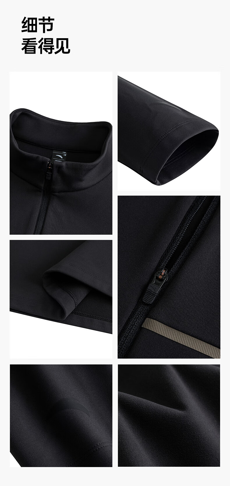 Super ANTA Carapace Shield Antibacterial丨Fleet sports long-sleeved T-shirt for men in autumn and winter light warm velvet quick-drying pullover 152547408U Basic Black-4 XL/Male 180