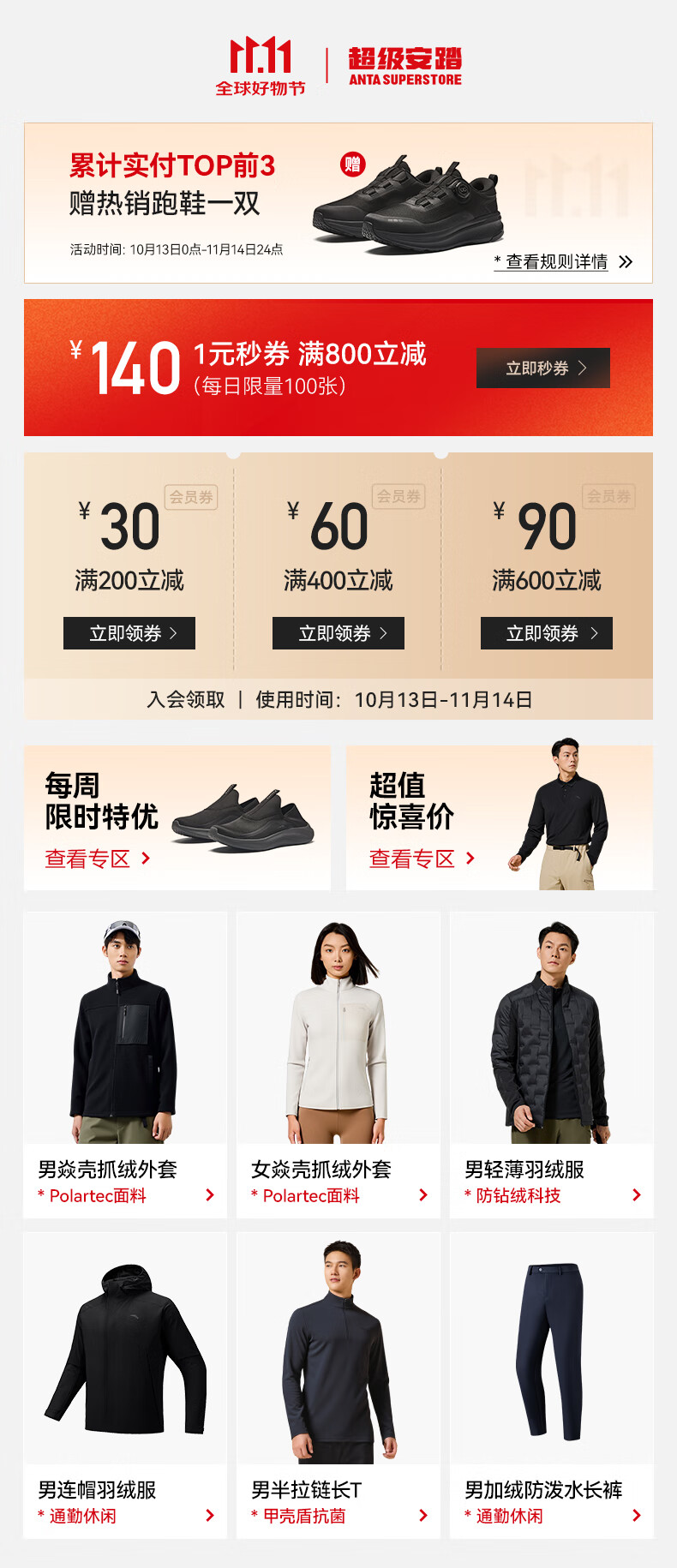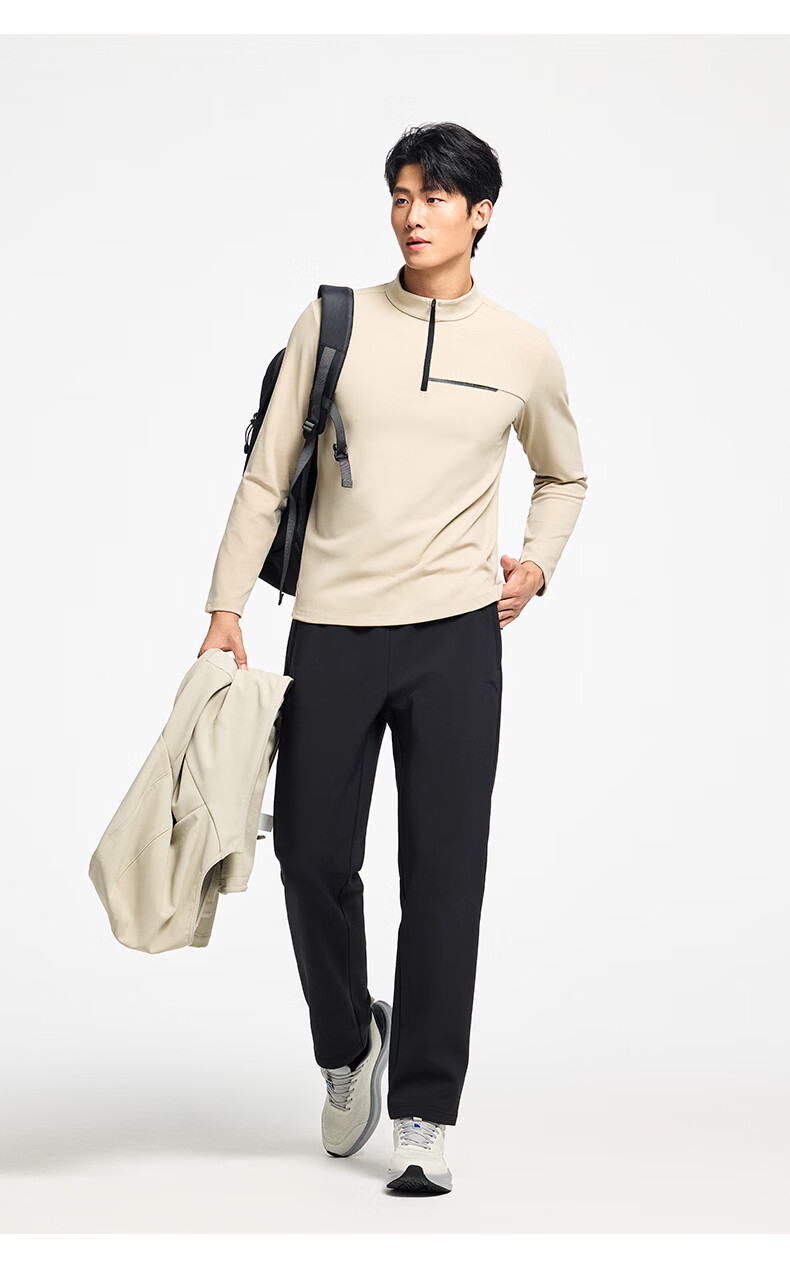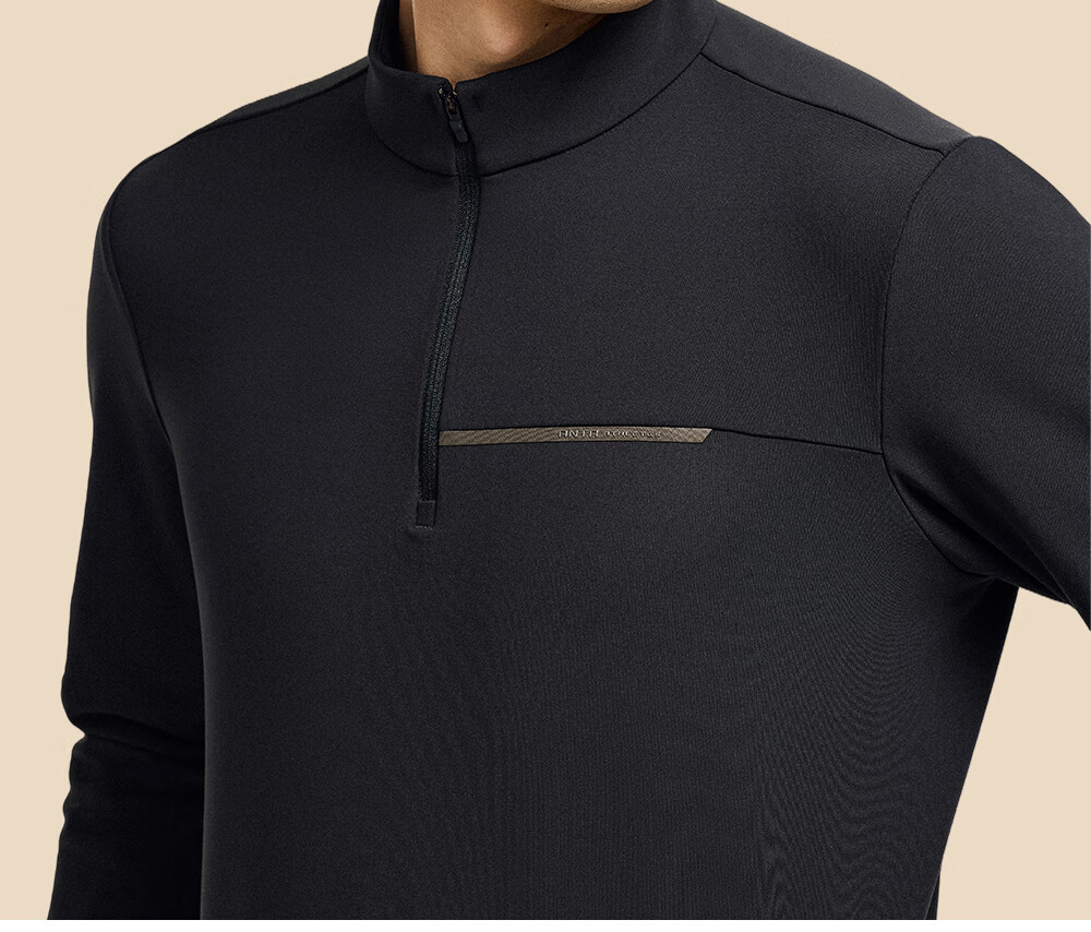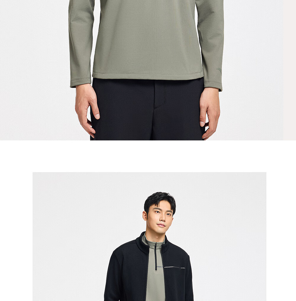 Super ANTA Carapace Shield Antibacterial丨Fleet sports long-sleeved T-shirt for men in autumn and winter light warm velvet quick-drying pullover 152547408U Basic Black-4 XL/Male 180