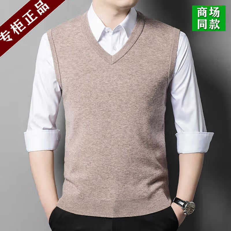 EMZ Ordos Cashmere Sweater Men's Cashmere Vest Thickened V-neck Pullover Cashmere Vest Sleeveless Waistcoat Camel L 170120-140Jin[Jin equals 0.5kg]