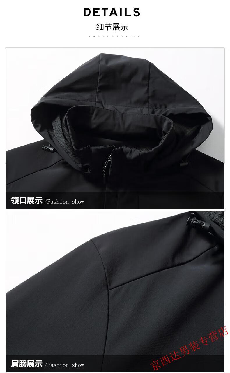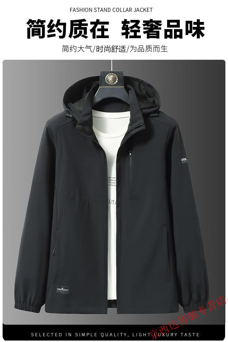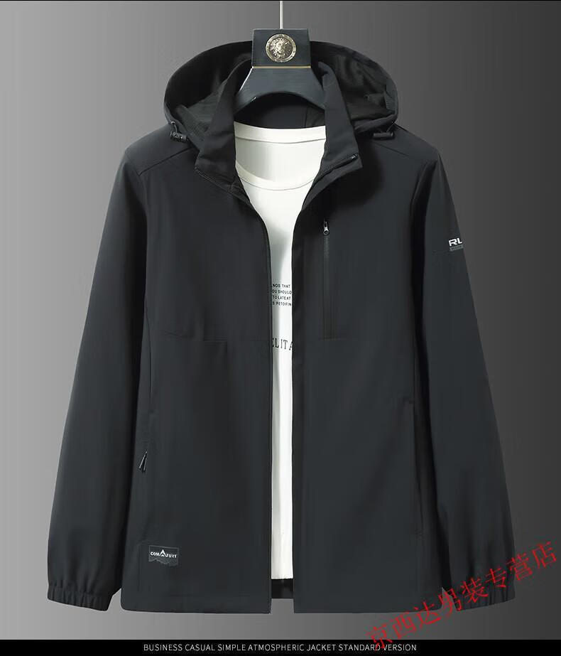 International Milan high-end light luxury spring and autumn large size men's sports jacket fat man removable hood coat men's thin breathable top black gift box 2XL