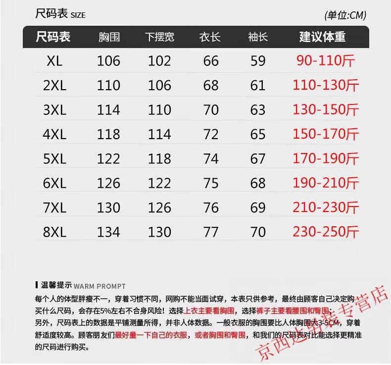 China (cm) 165 / 88-90 170 / 96-98 175 / 108-110 180 / 118-122 185 / 126-130