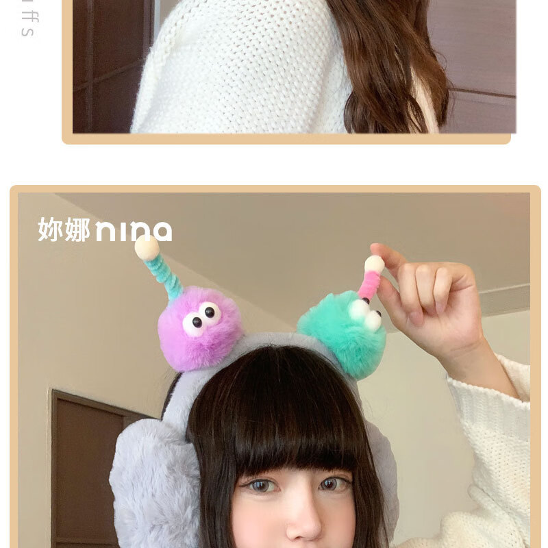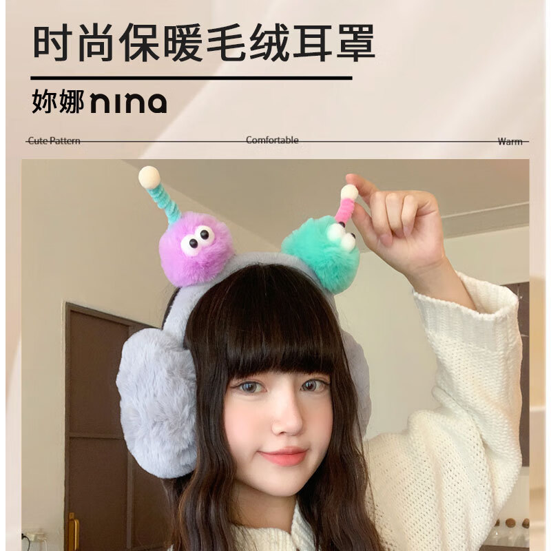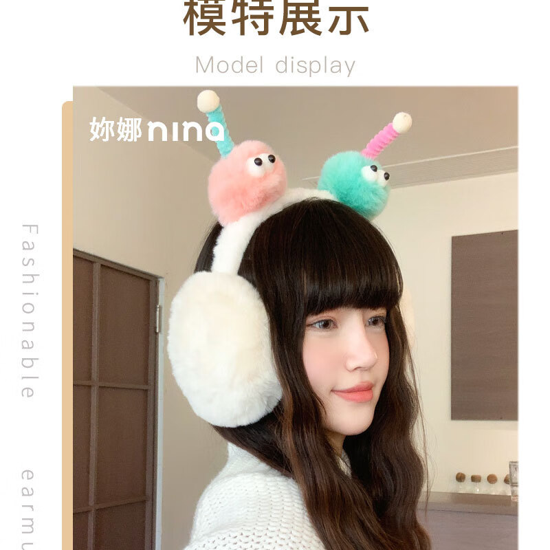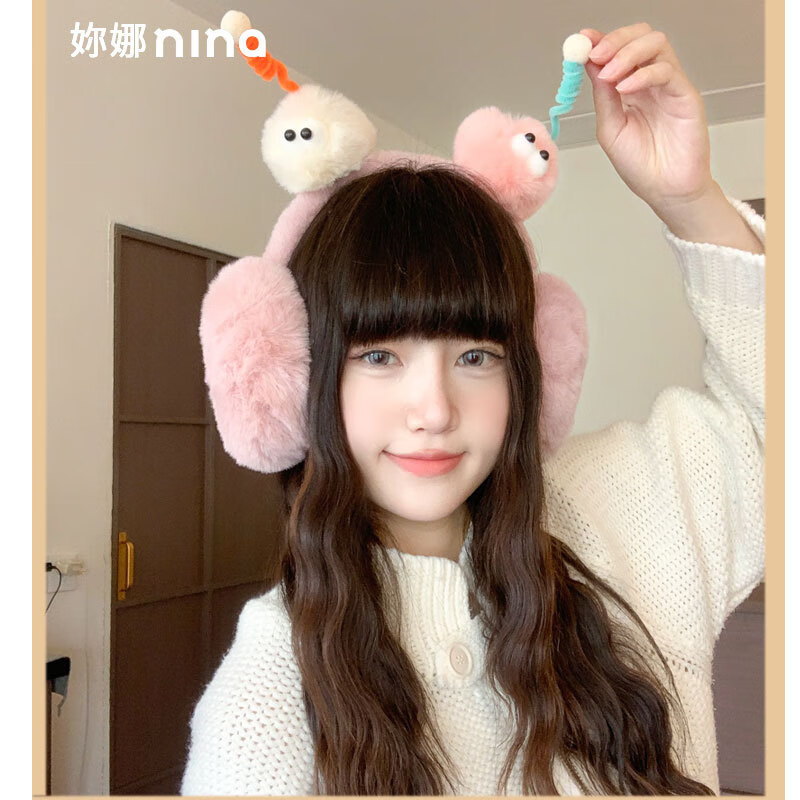 BIBK Japanese cute and funny plush earmuffs for women in winter, warm and windproof earmuffs, earbags, earmuffs, student riding earmuffs [Funny Earmuffs] White