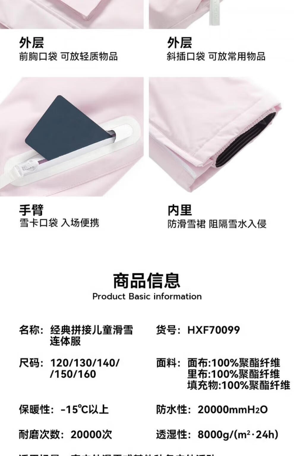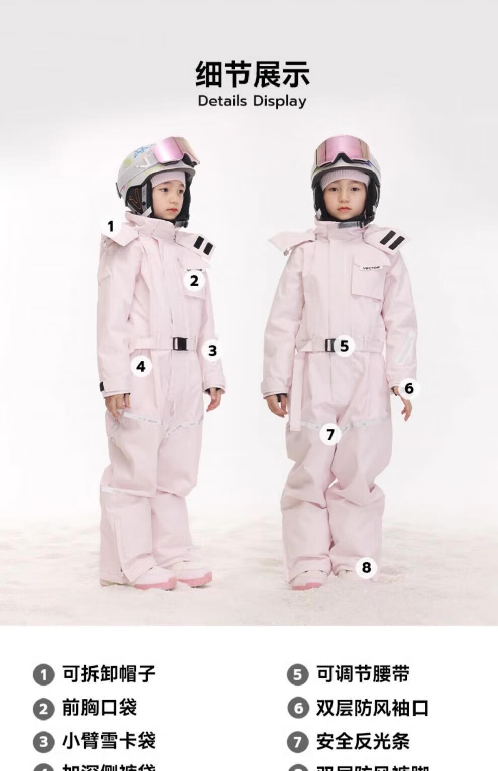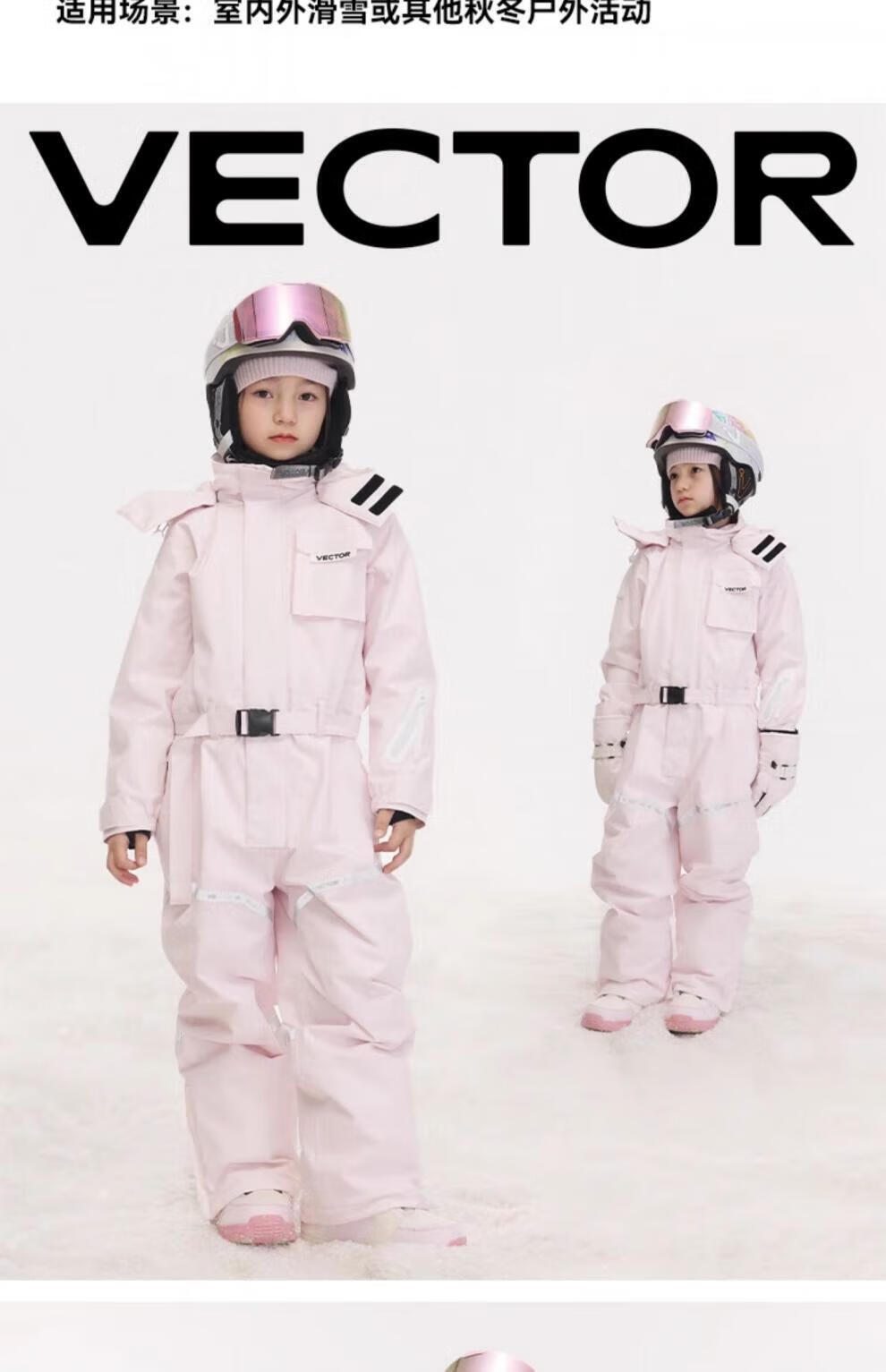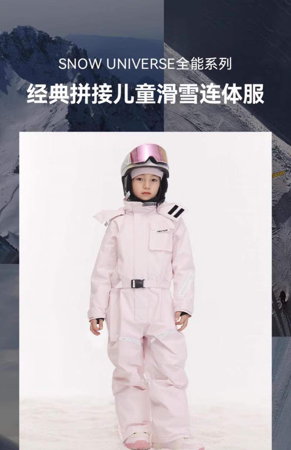 Wanketuo children's one-piece ski suit for boys and girls, outdoor thickened warm waterproof ski suit and pants set, complete set of snow equipment, glacier powder M 150, suitable for height 145-155c