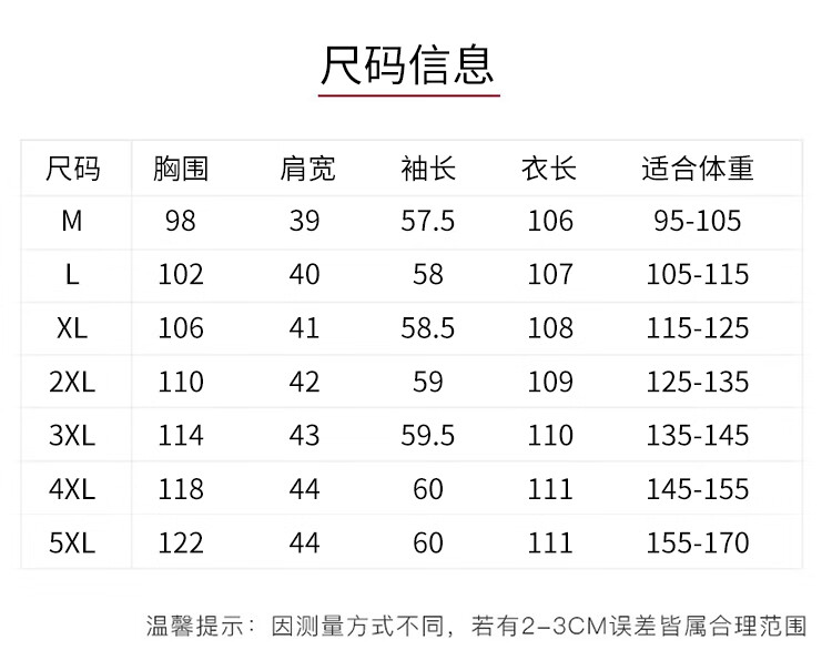 | China (cm) | 165 / 88-90 | 170 / 96-98 | 175 / 108-110 | 180 / 118-122 | 185 / 126-130 |
