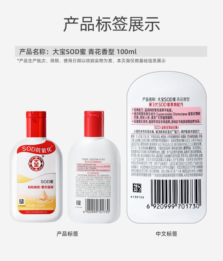 Dabao sod honey men and women face cream lotion moisturizing lotion body autumn and winter skin care face moisturizer Dabao SOD honey 200ml*2