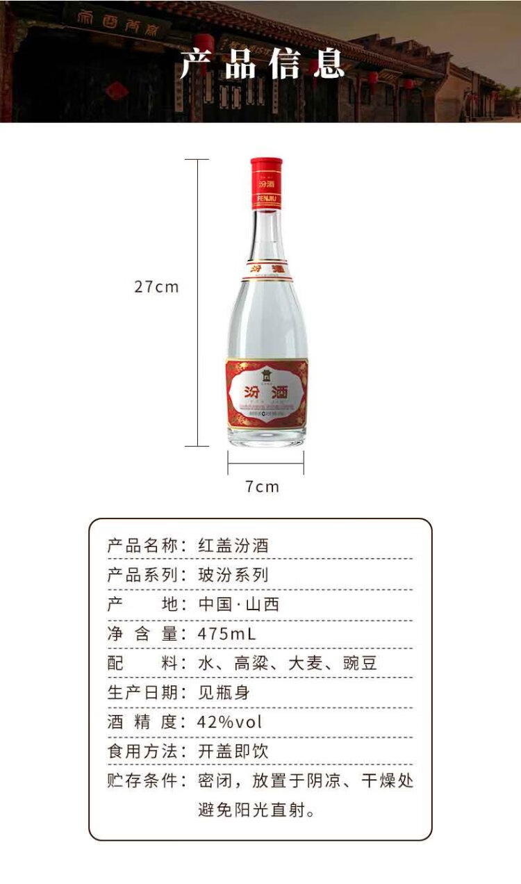 Fenjiu Red Cover Fen Fen Liquor 42% 475mL Single Bottle Pure Liquor