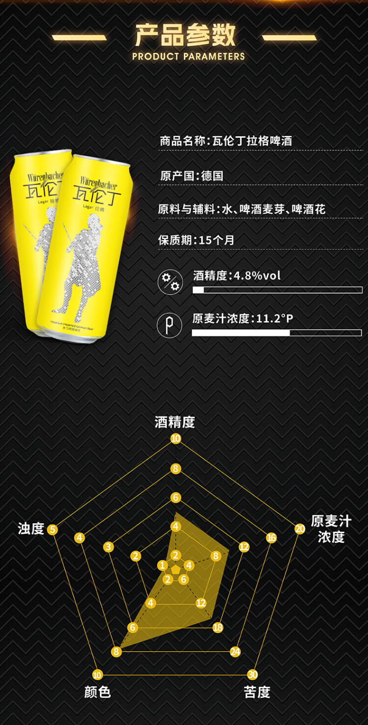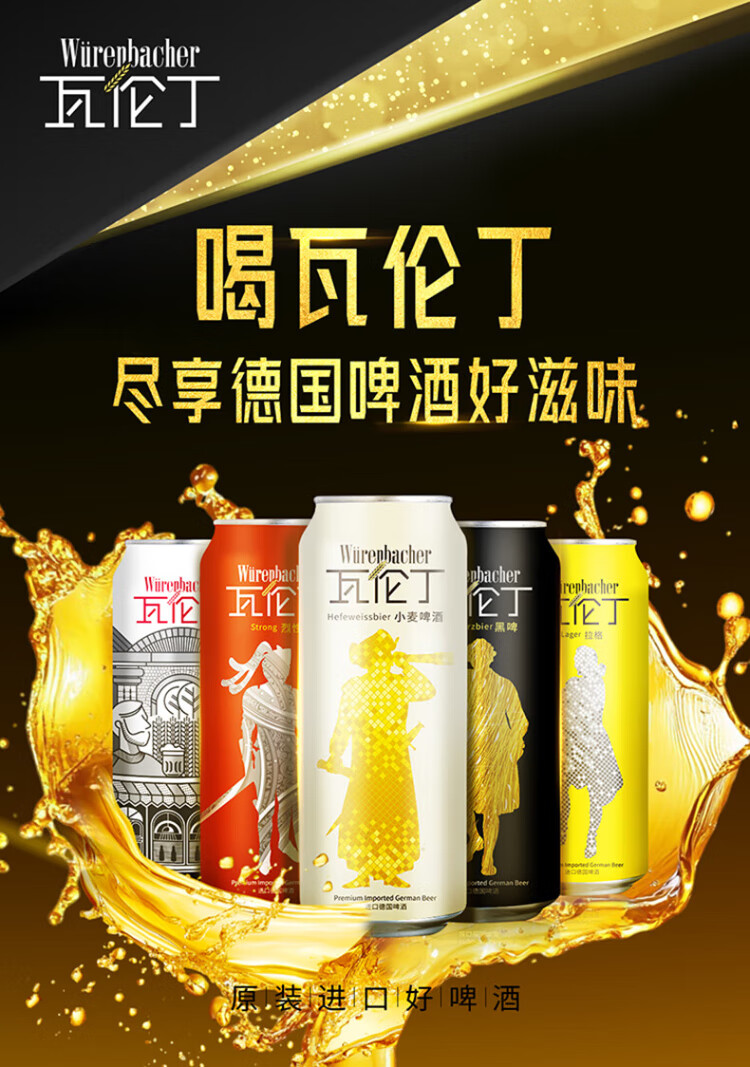 Valentine (Wurenbacher) Lager 500ml*24 cans German imported craft beer, refreshing and sweet, full box, Double Eleven hot sale