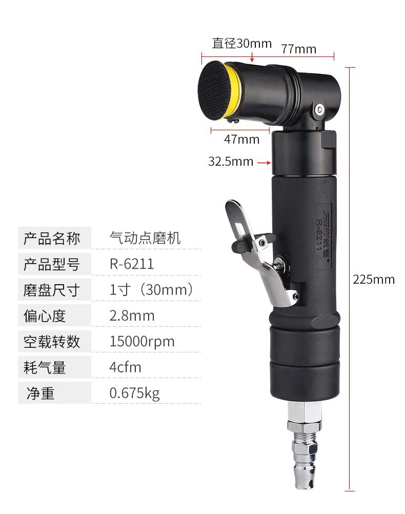 Ruiyi (RUIYI) 1 Zoll 6211 pneumatische Schleifpapiermaschine Schleifmaschine Schleifmaschine 25 mm Polierer Schleifer Punktschleifer Druckluftwerkzeug Ruiyi R-6211 Punktschleifer 1 Zoll