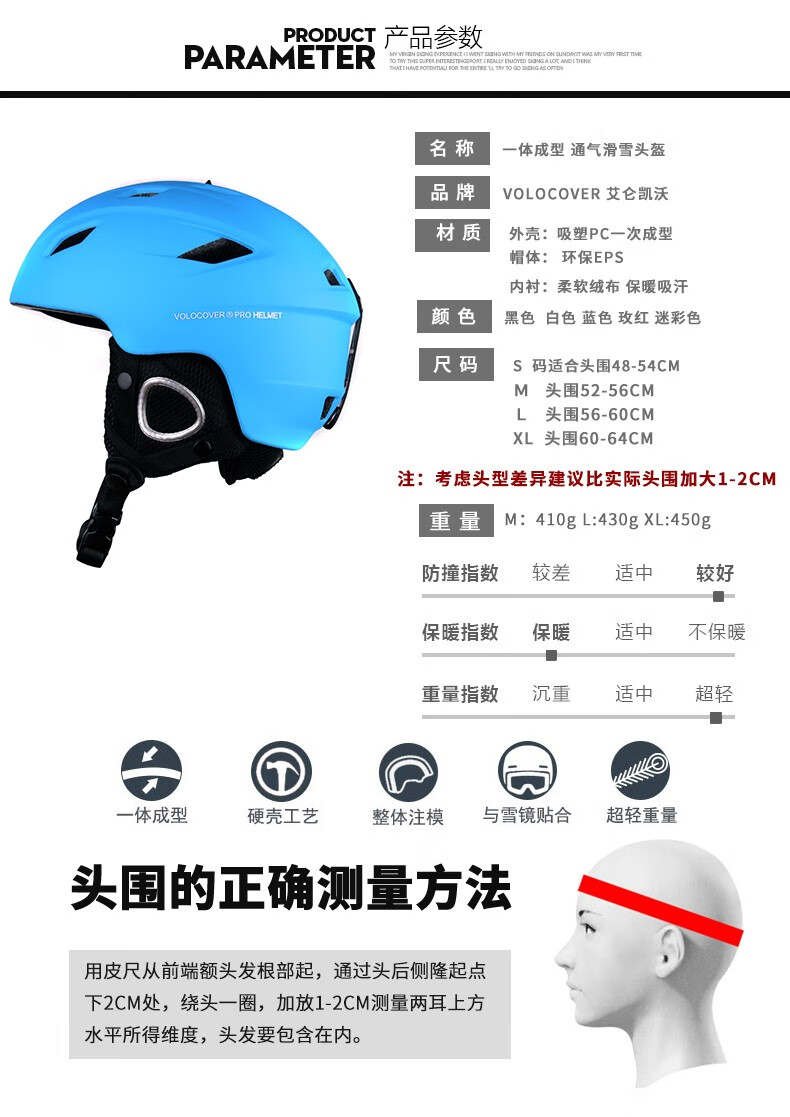VOLOCOVER professional ski helmet, one-time molding, ventilated design, motorcycle, roller skating, safety, helmet with vents, single and double snowboard helmet for men, women and children, white, L size (56-59), choose size according to head circumference
