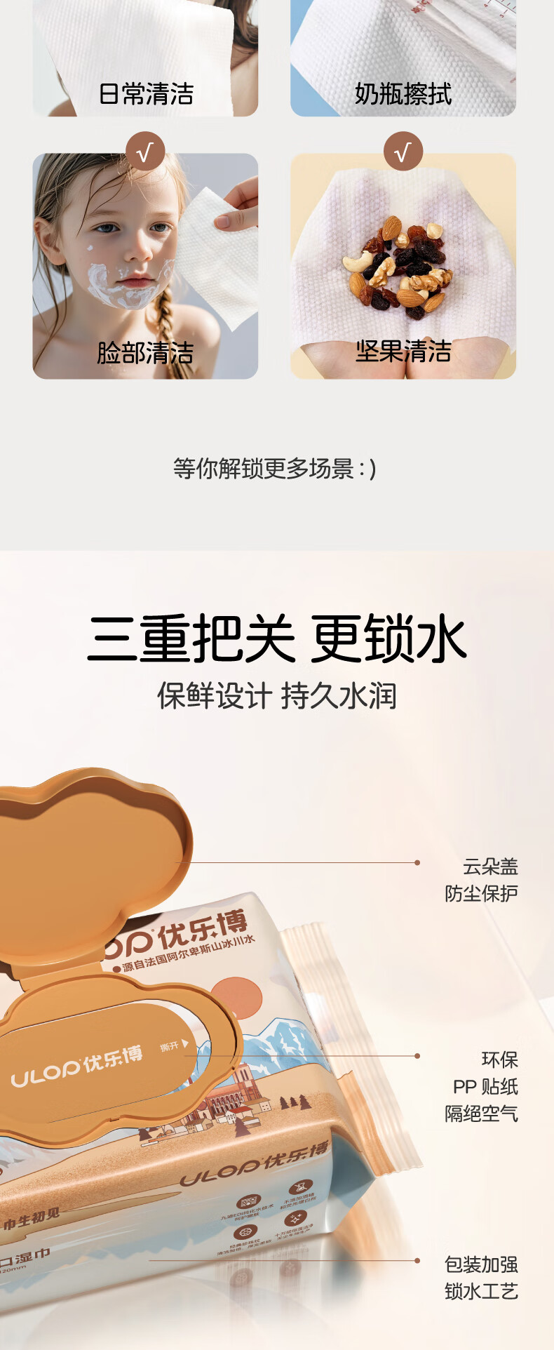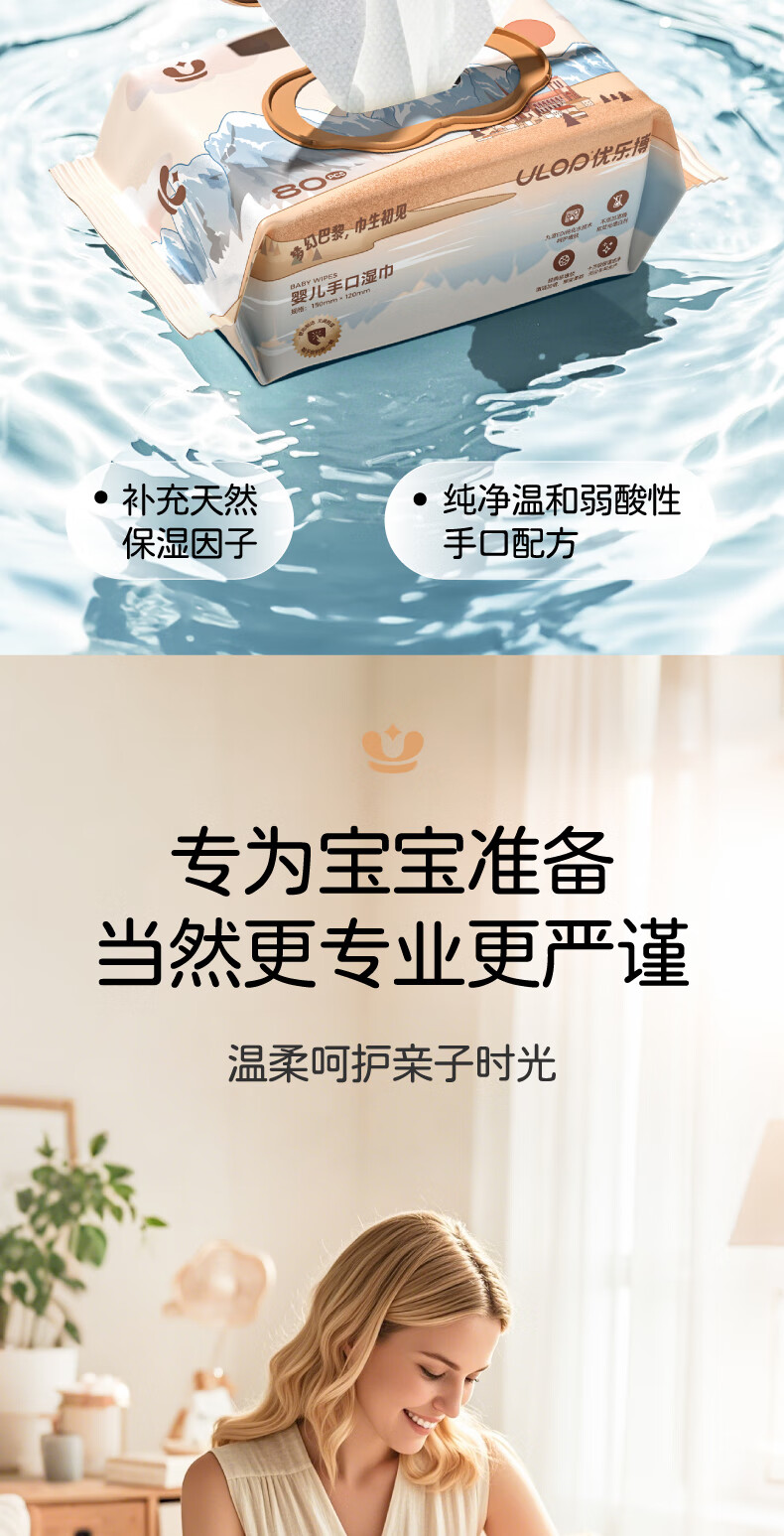ULOP baby wipes, thickened and covered, newborn baby wipes, infant hand and mouth wipes, cotton soft wipes, stacked Lego building blocks (log color number stacked high solid wood)