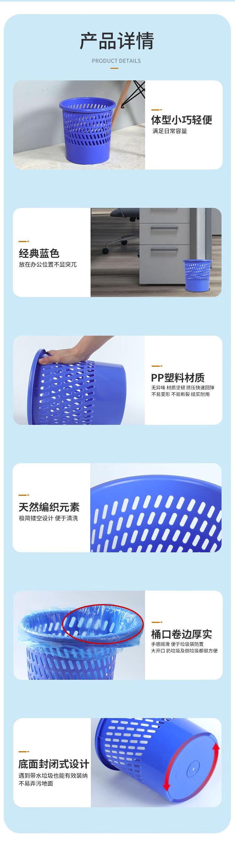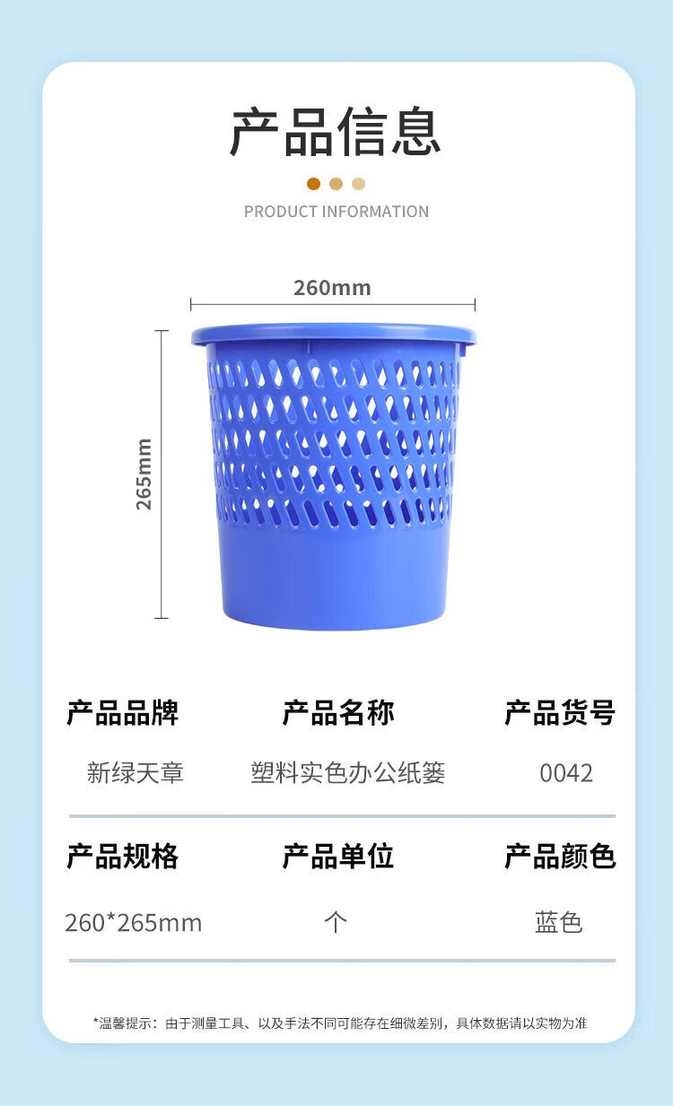 Tianzhang (TANGO) high-quality trash can office trash basket household 9.5L waste paper basket dormitory bathroom kitchen bedroom trash can durable and environmentally friendly large 255mm