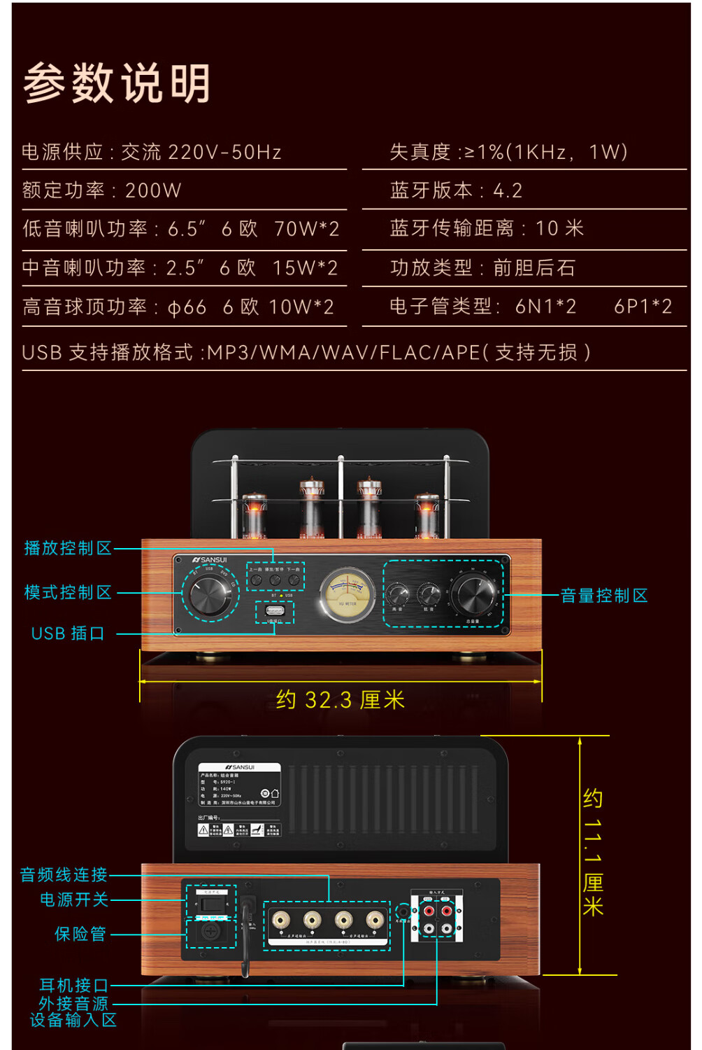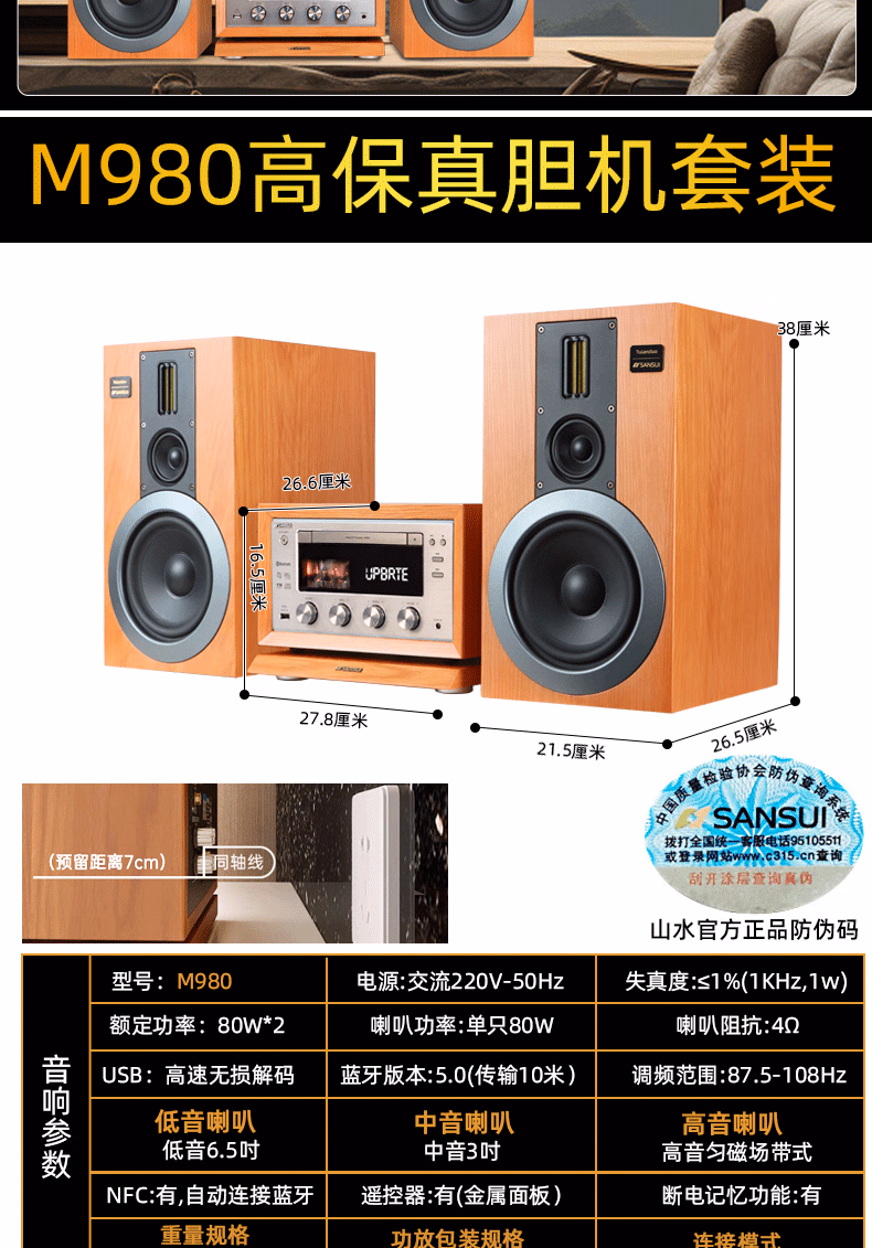 Shanshui National Subsidy S920 Audiophile Tube Amplifier HIFI Computer Mobile TV Bluetooth Audio Home Theater M980CD Combination Three-Way Speaker S920- New Version Upgraded Tube Amplifier Audiophile