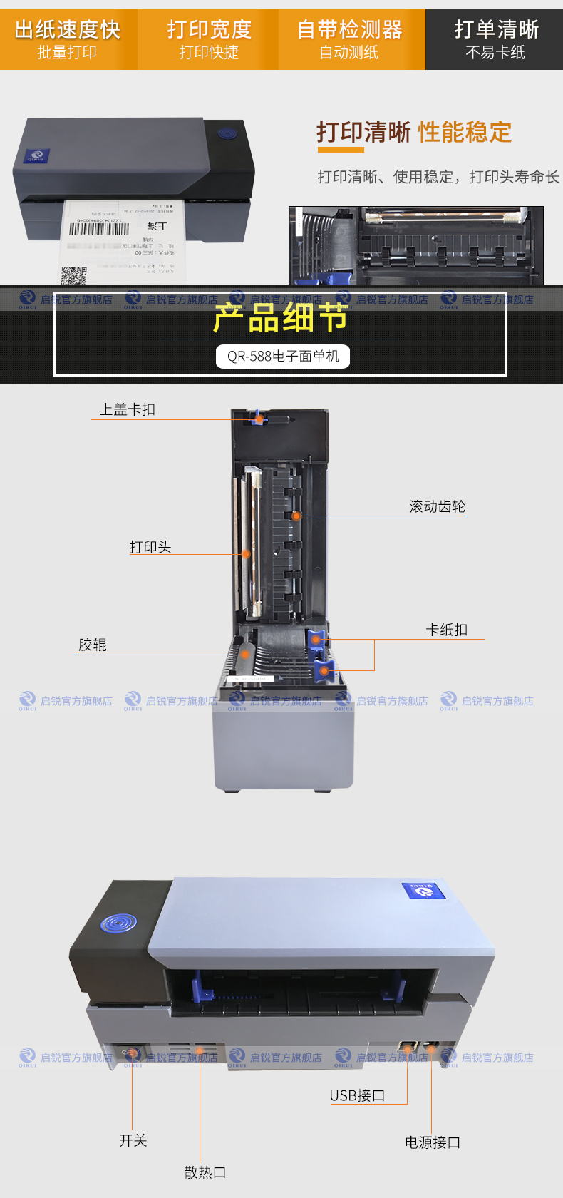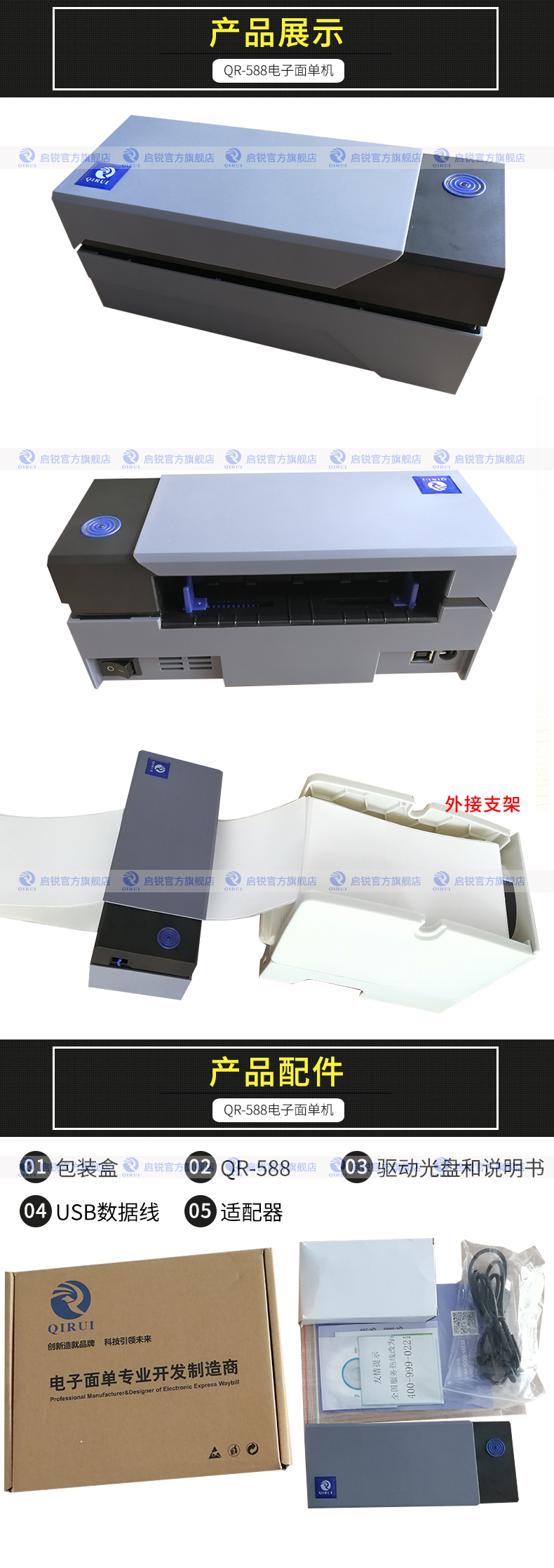 QIRUI (QIRUI) QR-588 thermal self-adhesive printer barcode label express bill electronic form printer one-couplet express printer QIRUI 588
