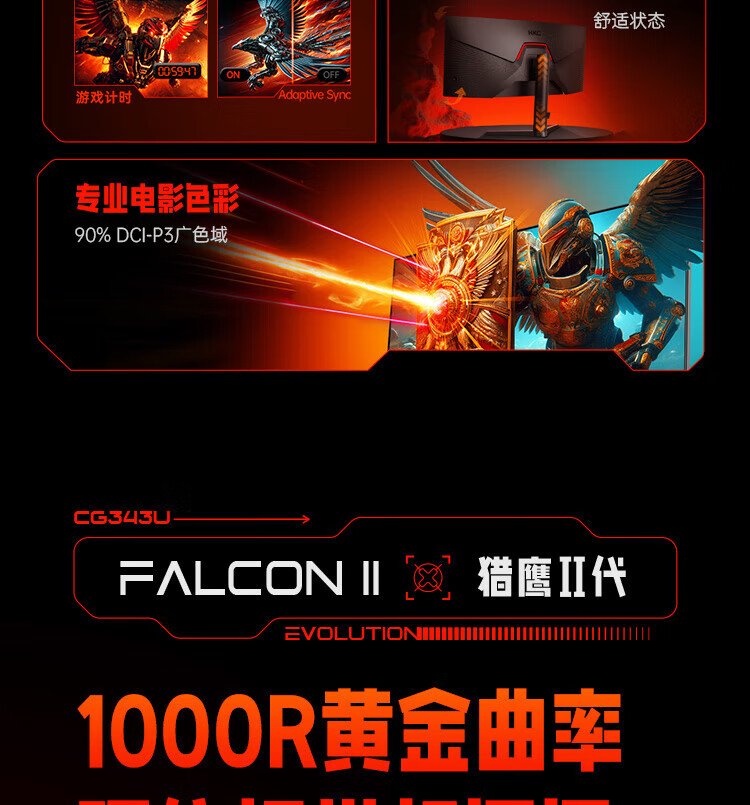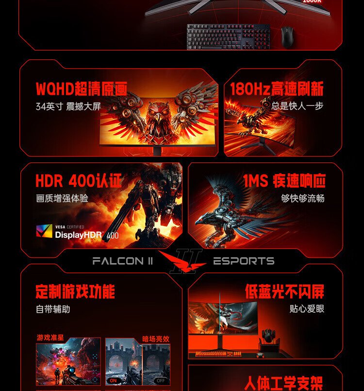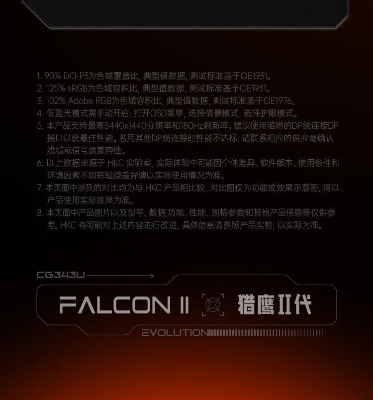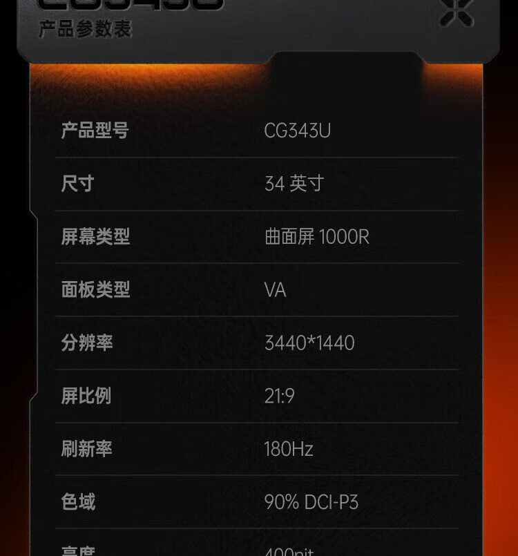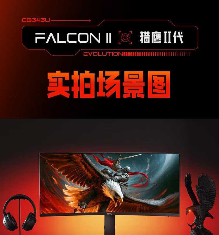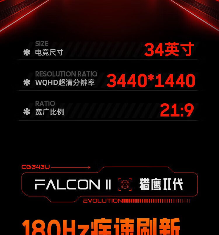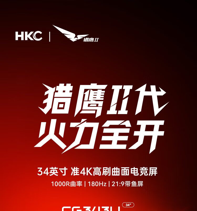 HKC 34-inch 21 9 hairtail screen WQHD quasi-4K ultra-clear 180Hz high brush 1ms curved 1000R gaming e-sports HDR400 lifting and rotating monitor Falcon CG343U 34-inch/quasi 4K/180Hz/lifting and rotating CG343U National Joint Warranty
