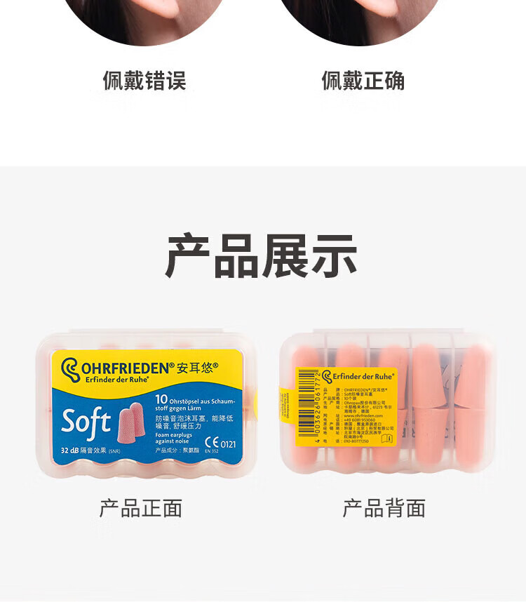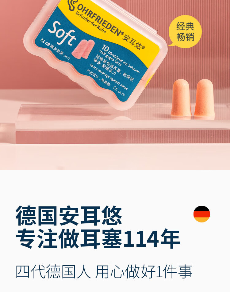 Anti-noise sleep earplugs for men and women, anti-snoring earplugs for work, study, sleep, soft5 pairs imported from Germany