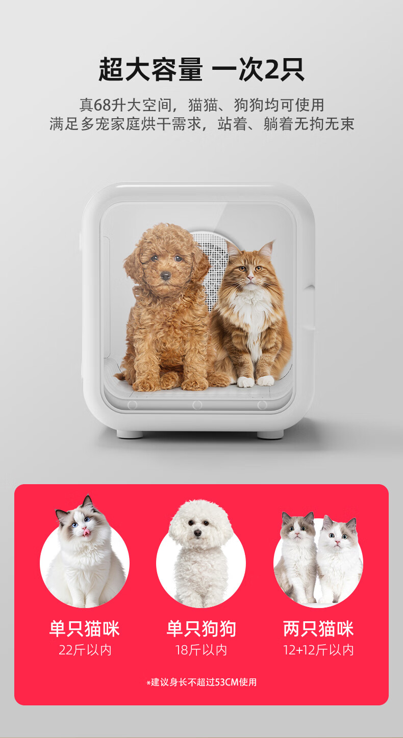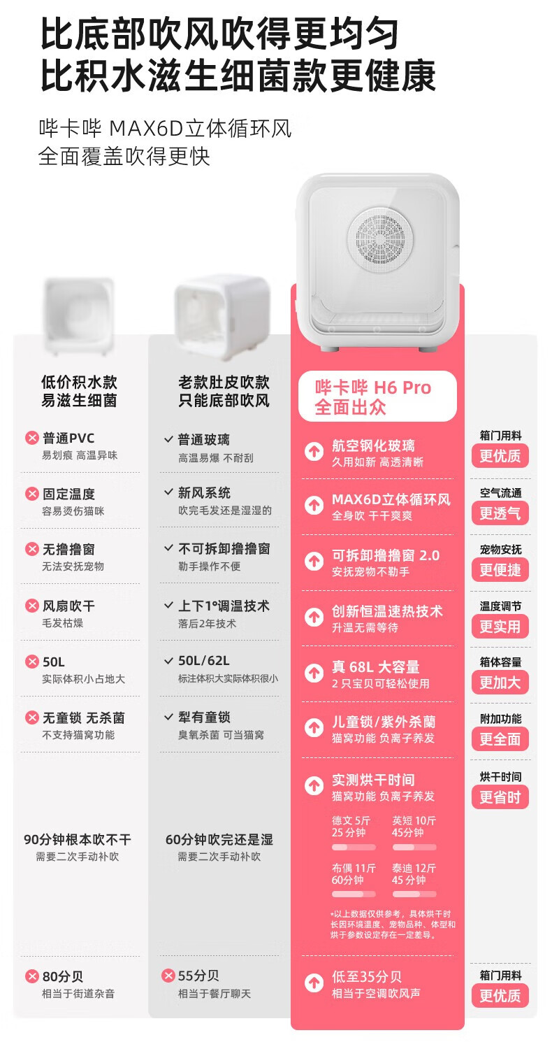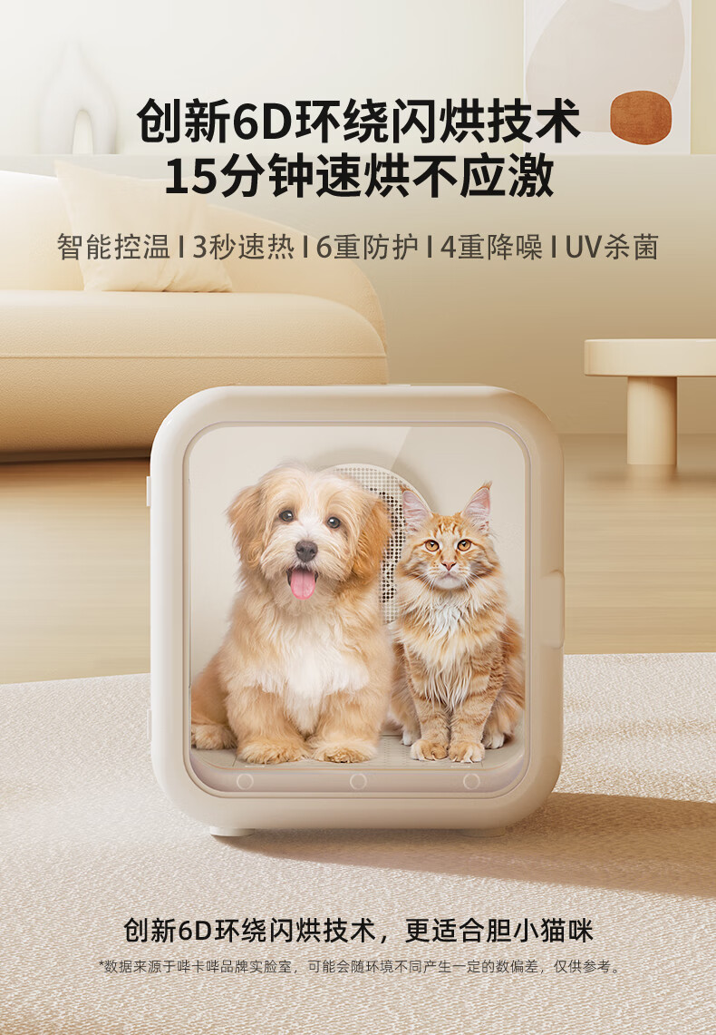 Bikabee Pet Intelligent Dryer Cat Fully Automatic Dog Drying Box Quiet Dog Household Cat Hair Blow Bag Hair Dryer Artifact H6Pro Pear Blossom White High-end 68L 6D Three-dimensional Circulating Air + Mode Adjustment