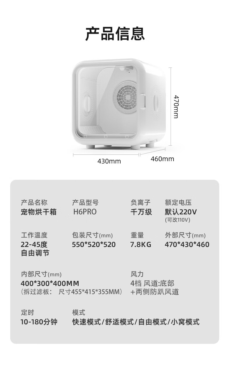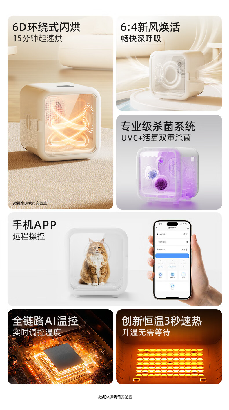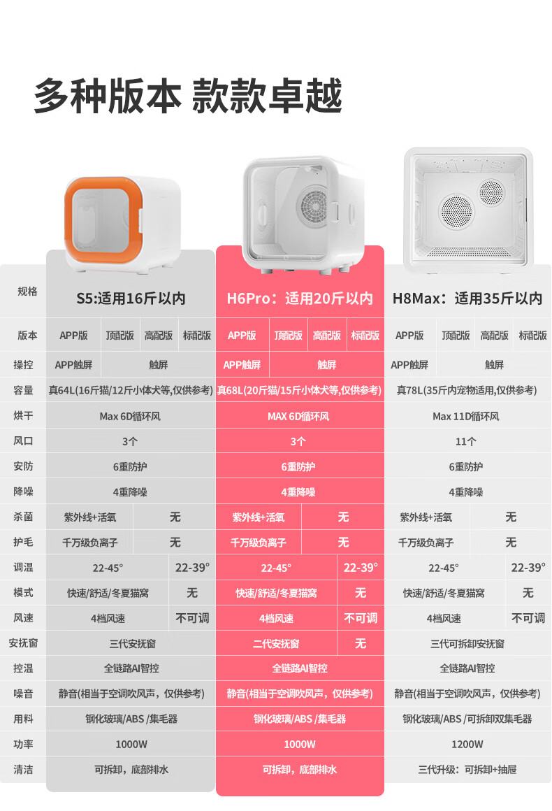Bikabee Pet Intelligent Dryer Cat Fully Automatic Dog Drying Box Quiet Dog Household Cat Hair Blow Bag Hair Dryer Artifact H6Pro Pear Blossom White High-end 68L 6D Three-dimensional Circulating Air + Mode Adjustment