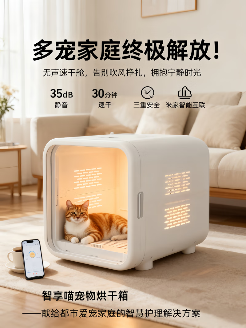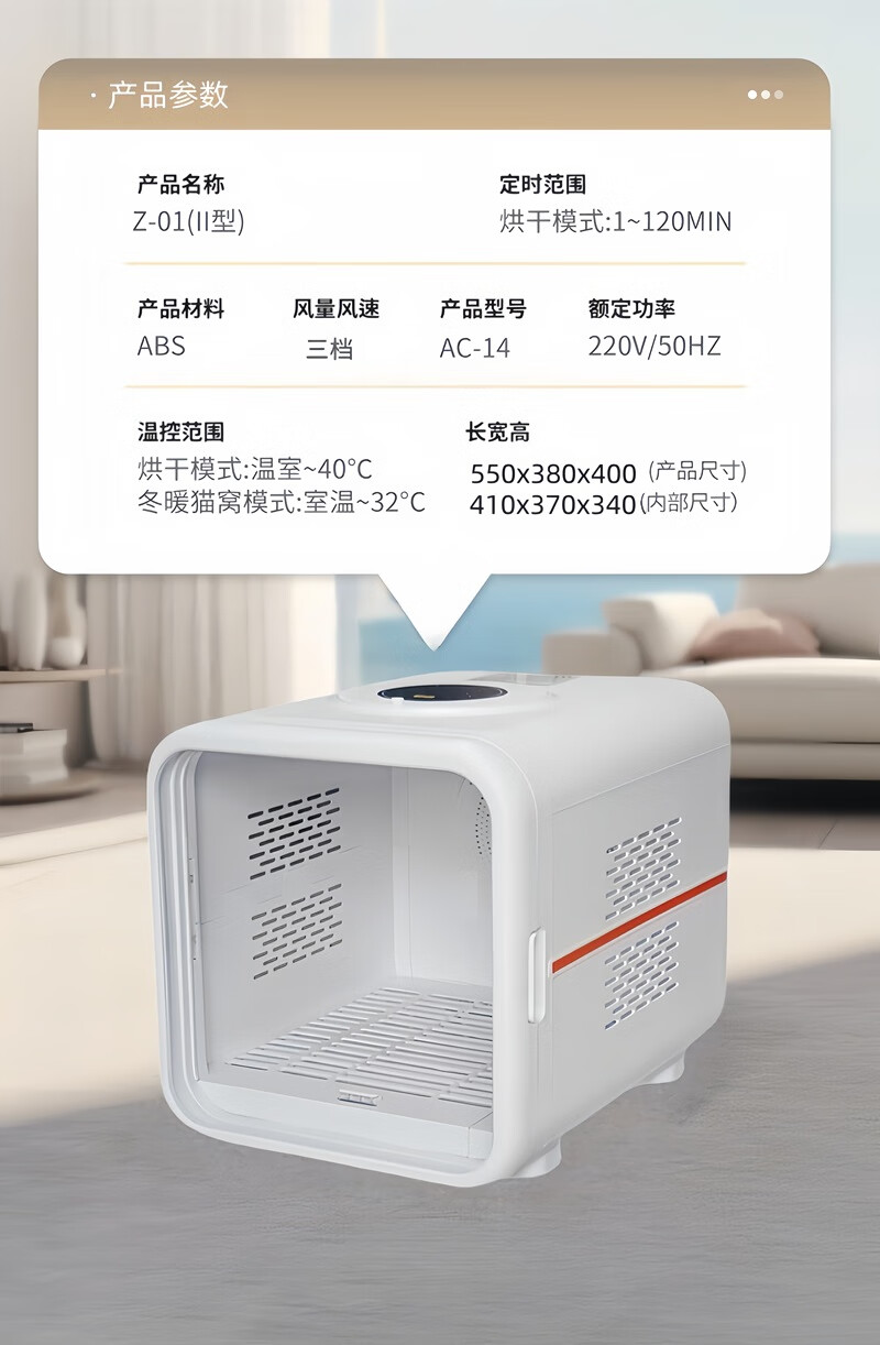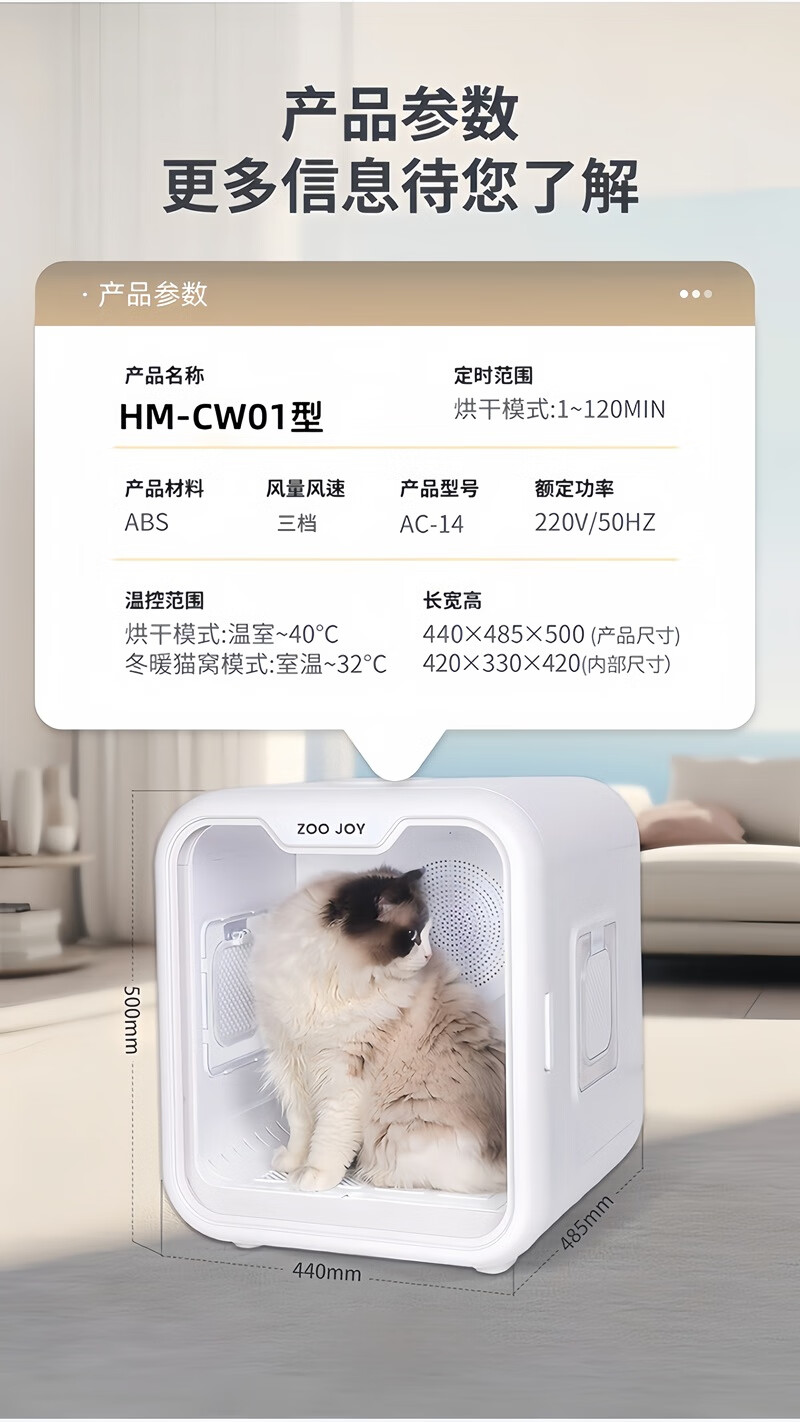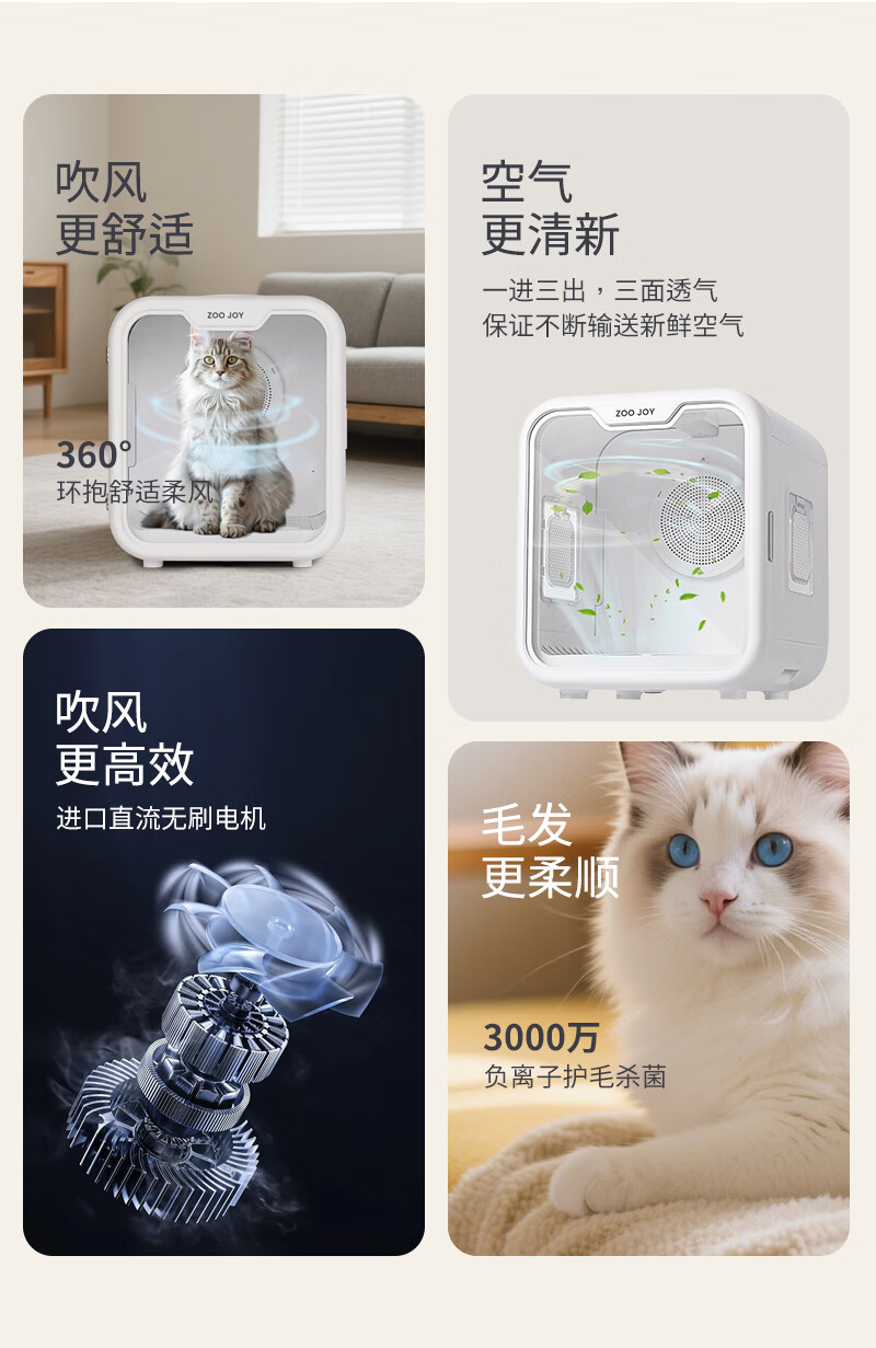ZOO JOY smart cat pet drying box household mute multi-cat and dog bathing and blowing cat dryer Mijia system interconnection Z01-II standard version triple safety protection smart drying box