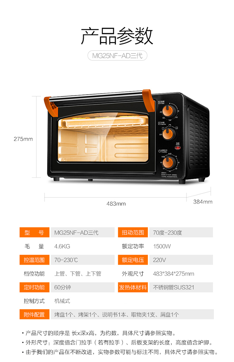 Midea MG25NF-AD 25-liter household oven multi-function electric oven wide area temperature control