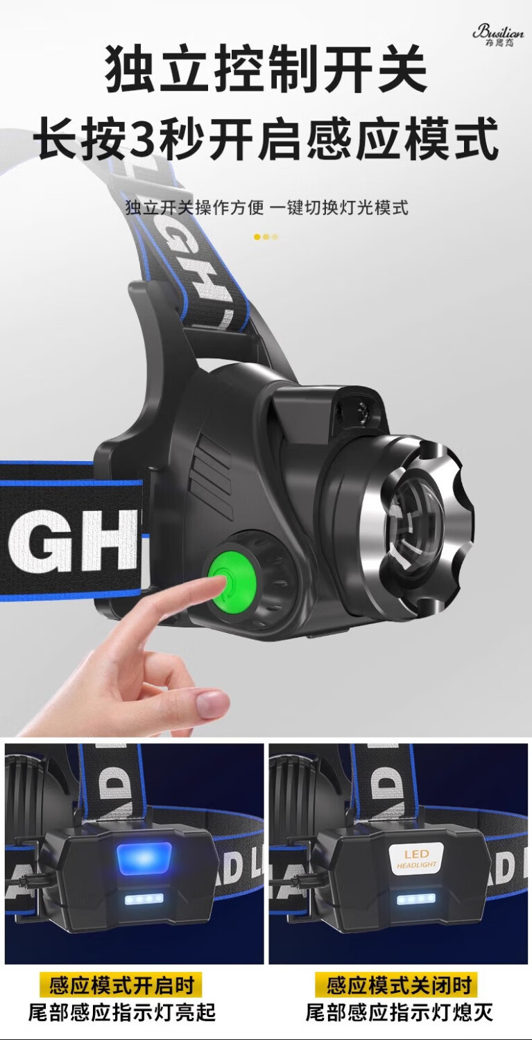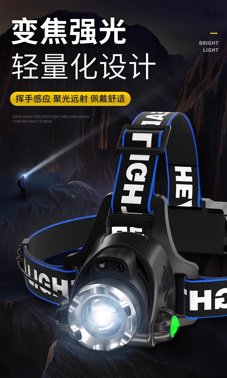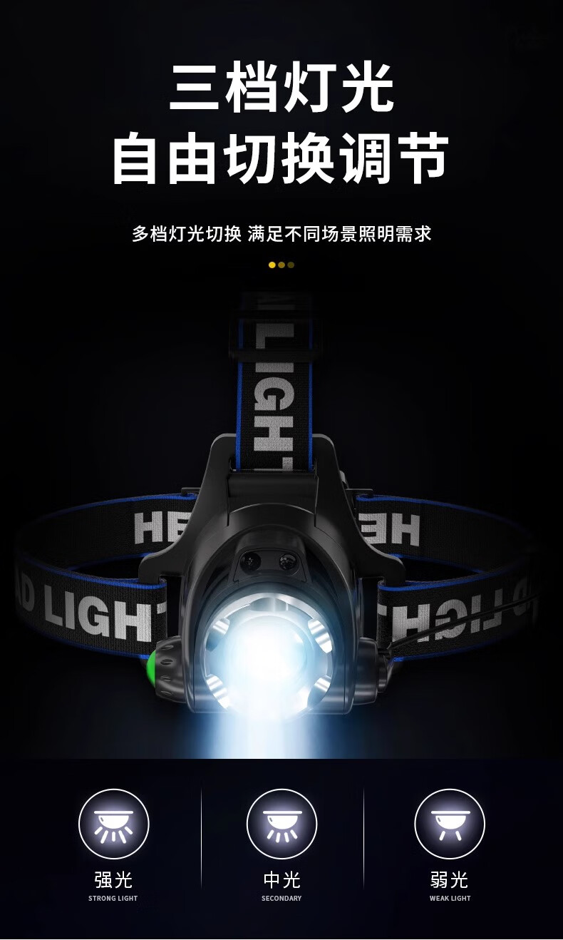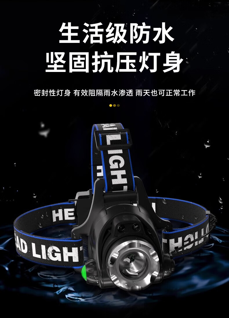 Dark Moon Zoom Induction Headlight Ultra-Long Battery Life Charging Strong Light Ultra-Bright Long-Range LED Outdoor Waterproof Scorpion Night Fishing Mine 99800W Induction Switch Single Yellow Light + Two Batteries and One Charge