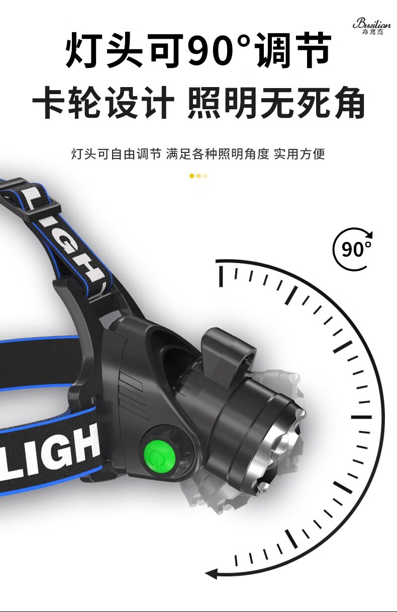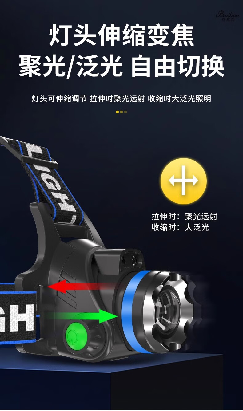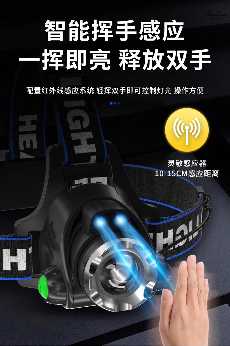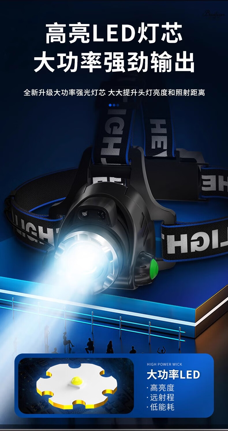 Dark Moon Zoom Induction Headlight Ultra-Long Battery Life Charging Strong Light Ultra-Bright Long-Range LED Outdoor Waterproof Scorpion Night Fishing Mine 99800W Induction Switch Single Yellow Light + Two Batteries and One Charge