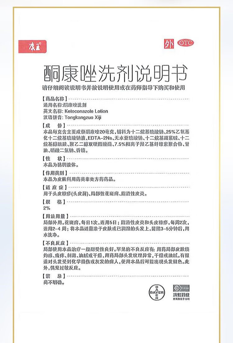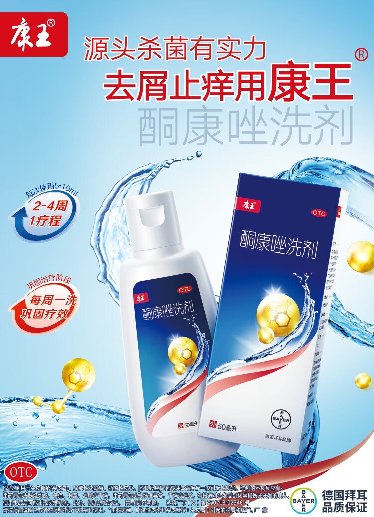Kangwang Ketoconazole Lotion 2%*50ml single box for oil control and itching scalp pityriasis folliculitis tinea versicolor seborrheic dermatitis medicinal anti-dandruff anti-hair loss non-selenium disulfide