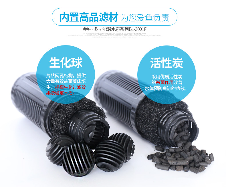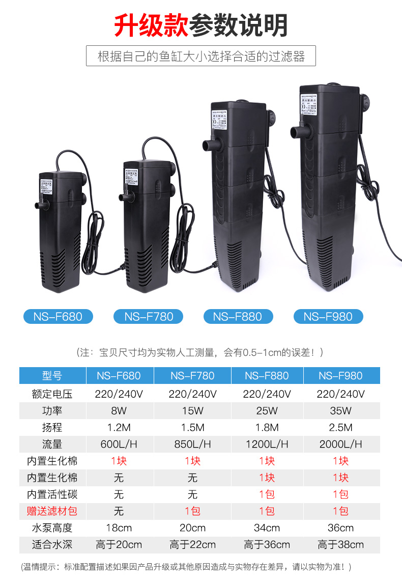 Fujian Jiang (minjiang) fish tank filter fish tank water purification filter aquarium built-in mini oxygenated goldfish Jinlong 2001F contains filter cotton and filter material 20W