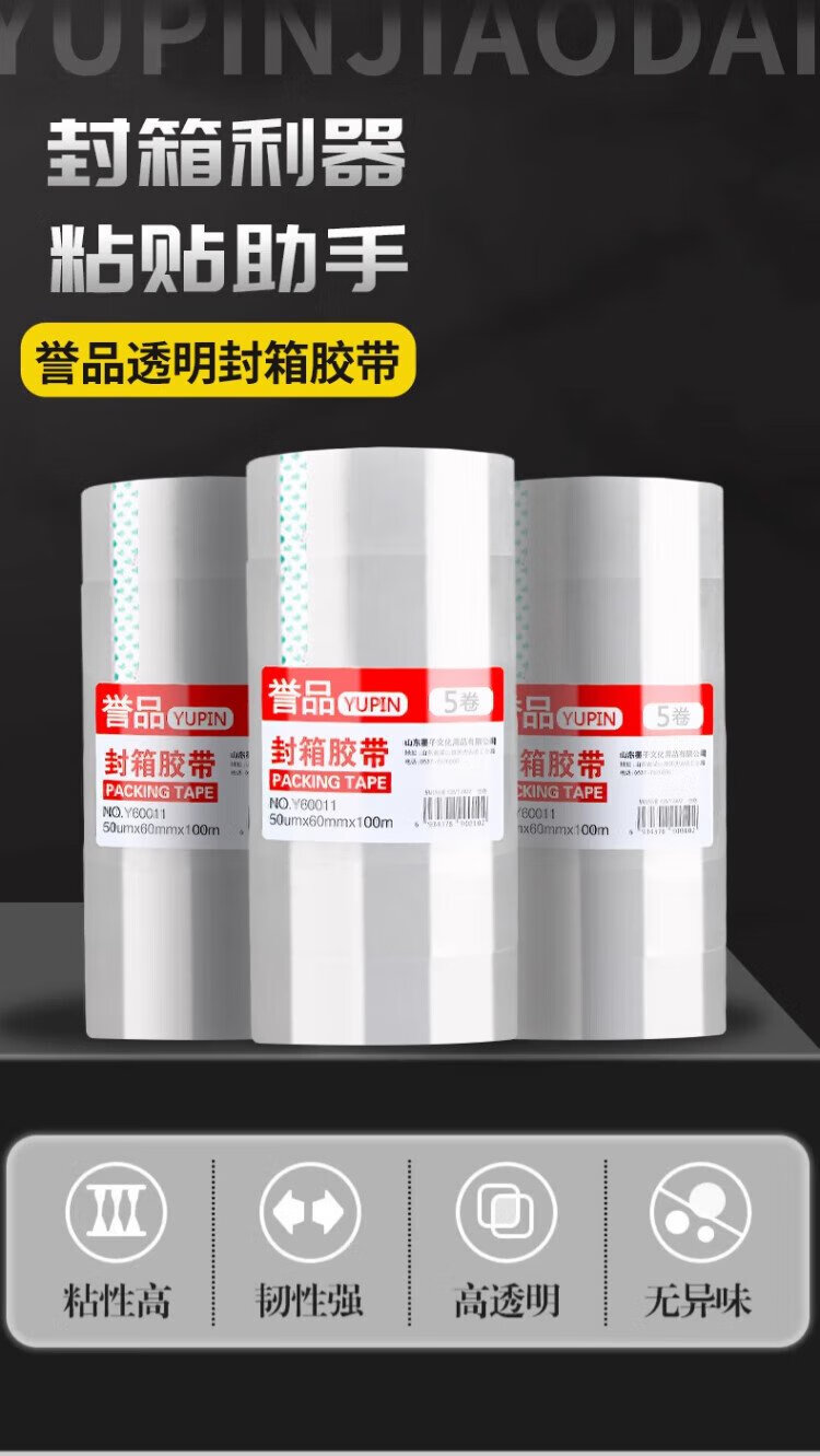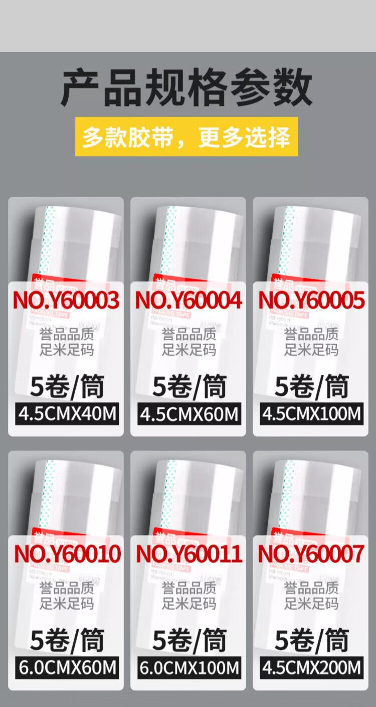 YUPIN transparentes Klebeband, breites Verpackungs- und Versiegelungsband, hochwertiges großes Klebeband, Großrollen-Versiegelungsband für ganze Kartons für Express-Fabriklager, Bürobedarf-Großhandel, 5 Rollen, Breite 60 mm x Länge 100 m