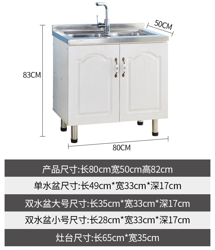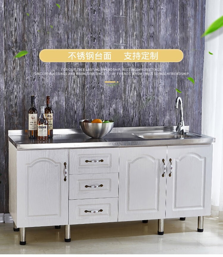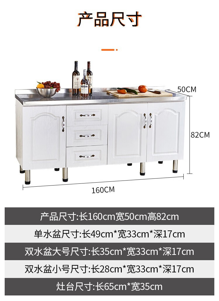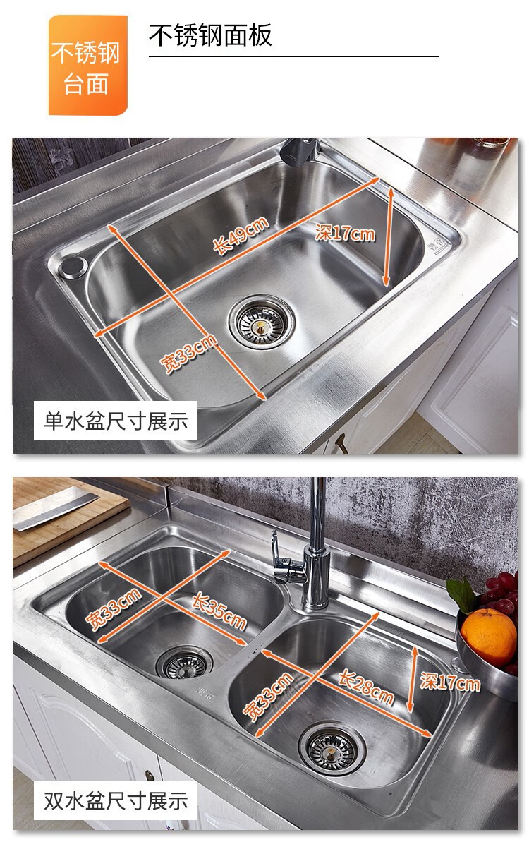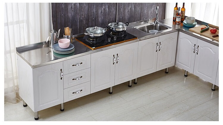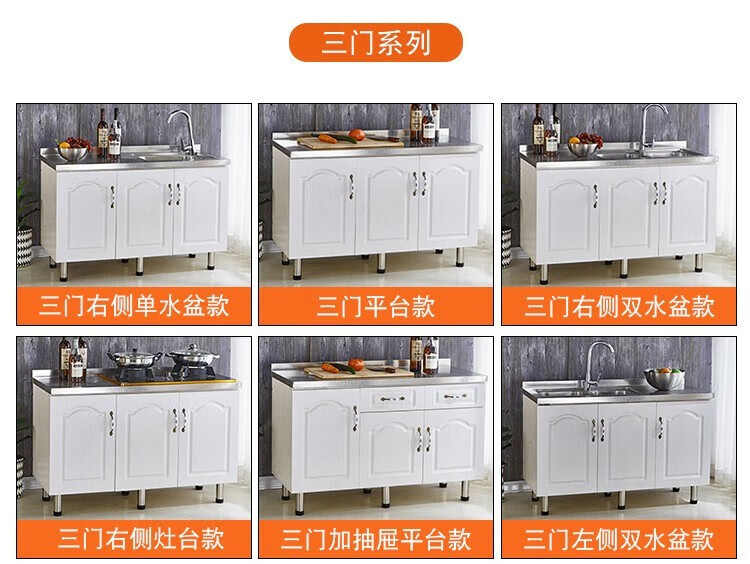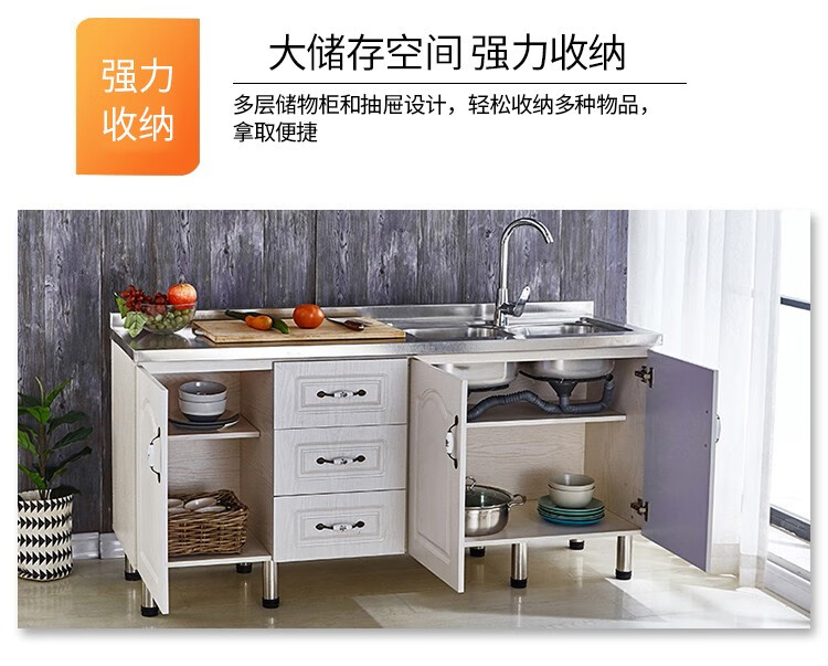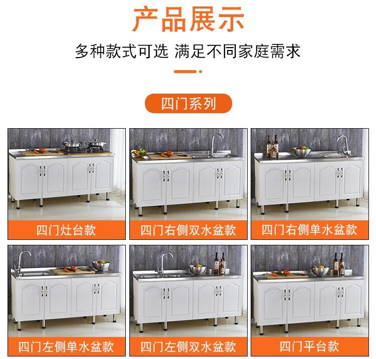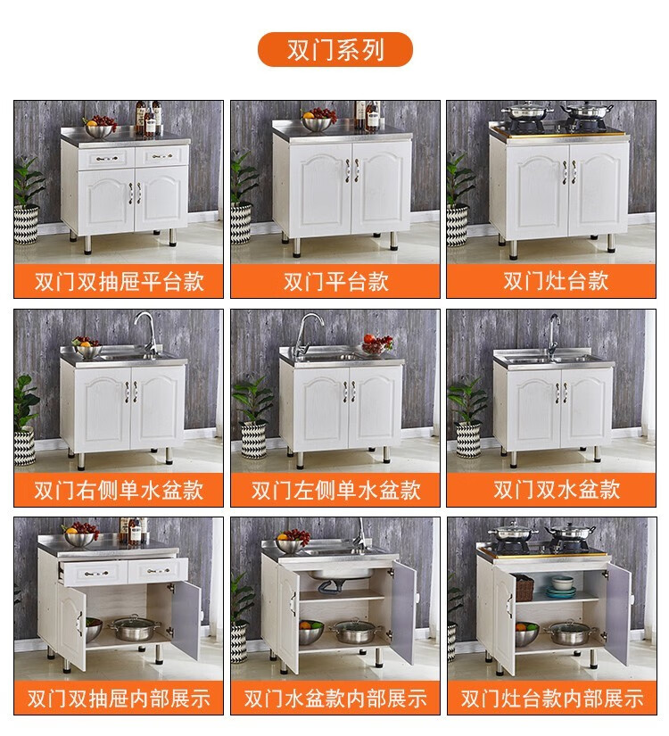Xiaochong Simple stove cabinet stainless steel kitchen cabinet washing gas tank sink storage cabinet storage cabinet 150 four-door double basin model