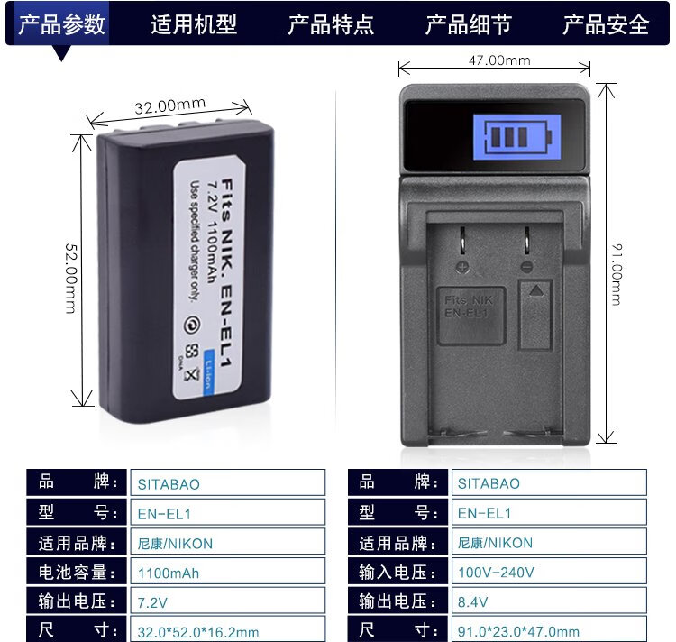 ODSX EN-EL1 is suitable for Nikon E885 E880 E995 digital camera camcorder battery USB charger battery Coolpix 775