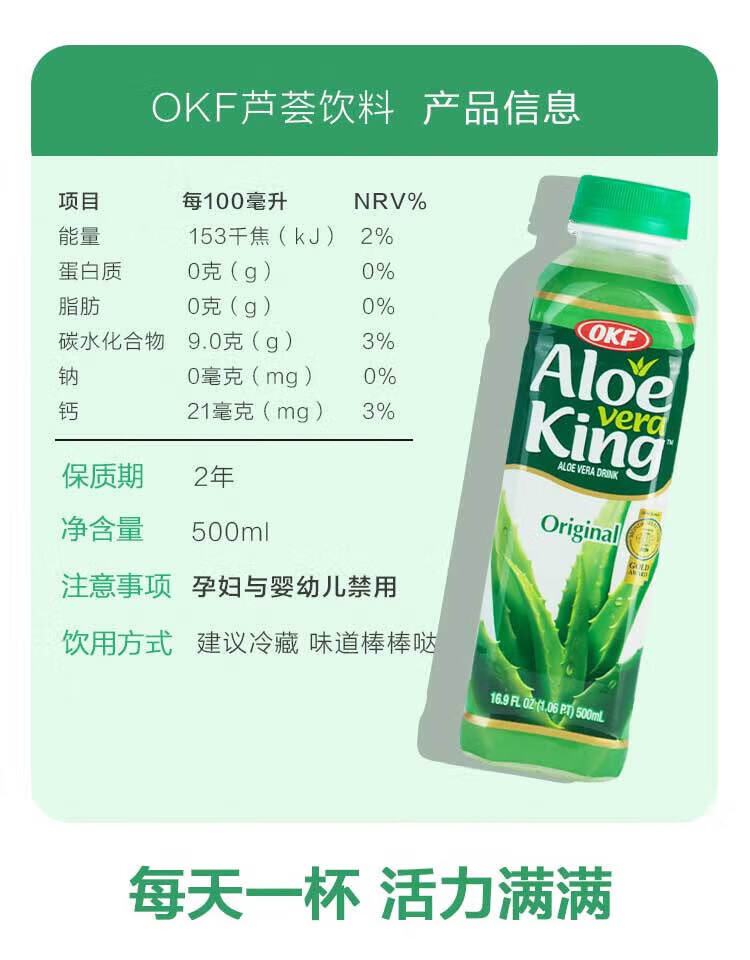 OKF imported from South Korea Aloe Vera Drink 500ml*4 bottles 8% Aloe Vera Gel crispy particles