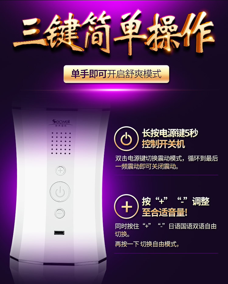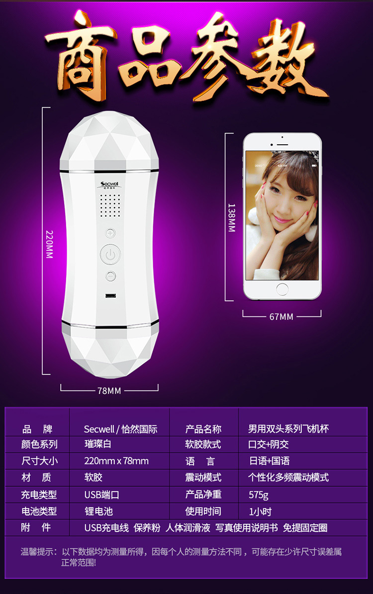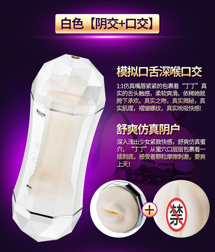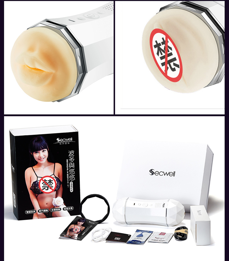 SECWELL Qiaran International Men's Masturbation Device Double-head Charging Vibration Hands-free Sounding Aircraft Cup Adult Sex Toys Bodo and Yoyo Aircraft Cup White
