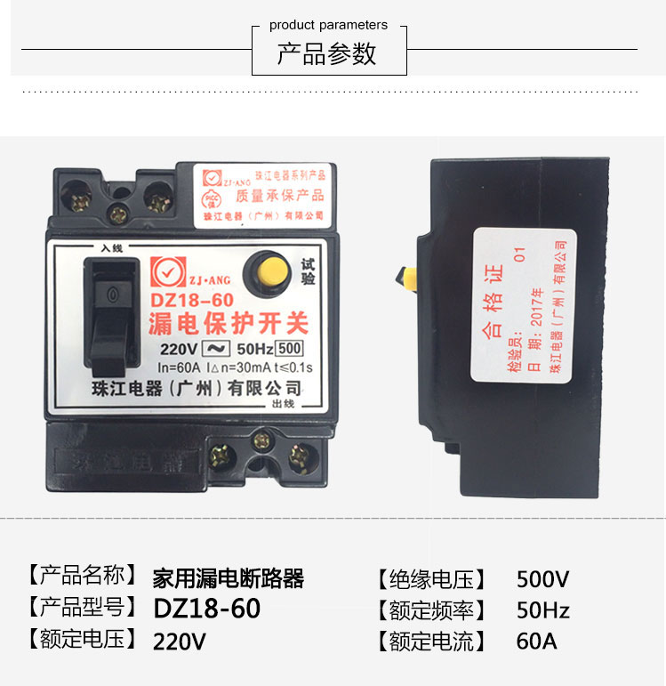 Zhujiang leakage circuit breaker 220V two-phase 40a60-an leakage protector switch 32a main switch 40A 2P