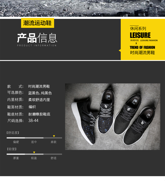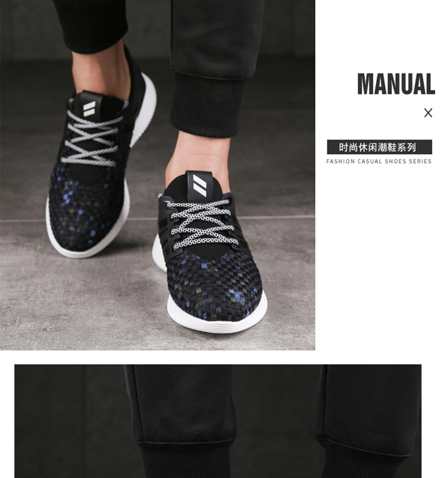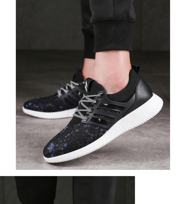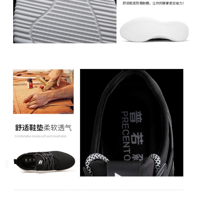 Precentor light sports casual shoes for men breathable running men's shoes outdoor low-cut mosaic fly woven shoes 1708 pure black size 42