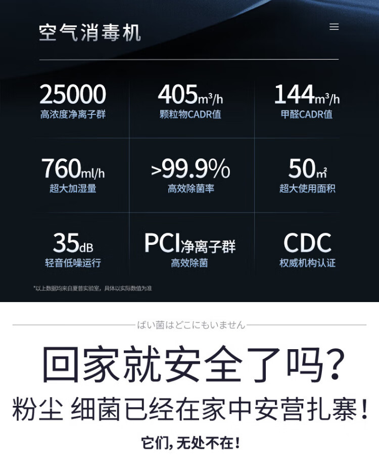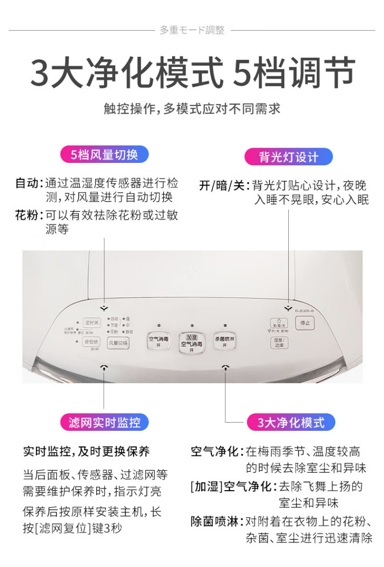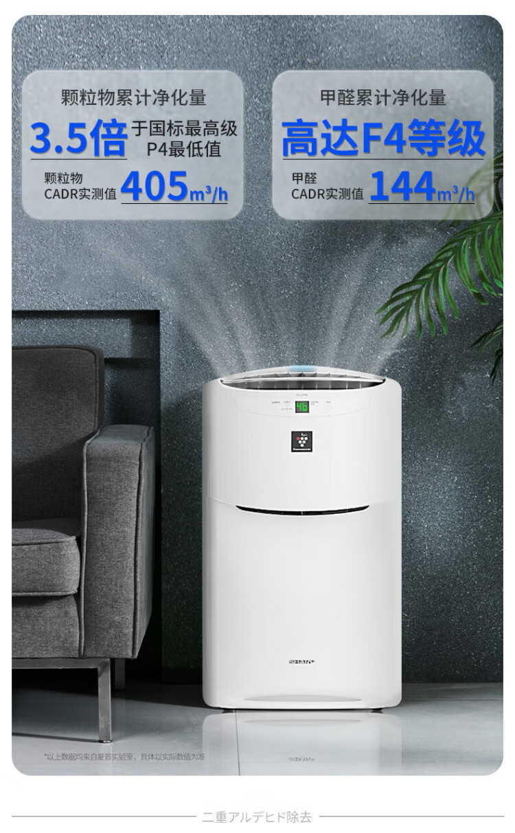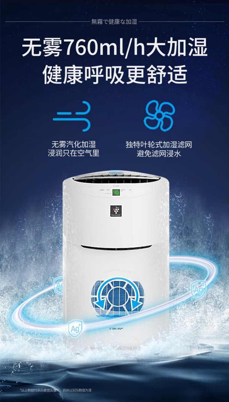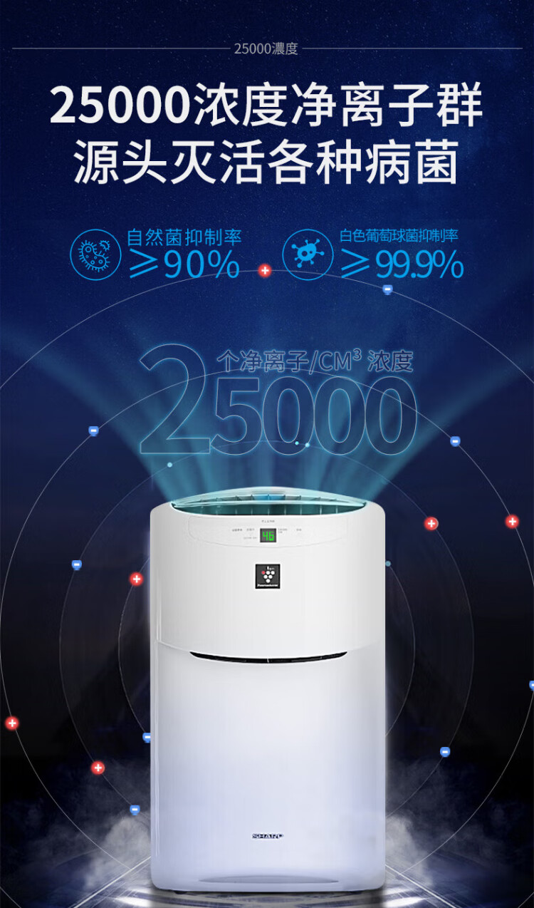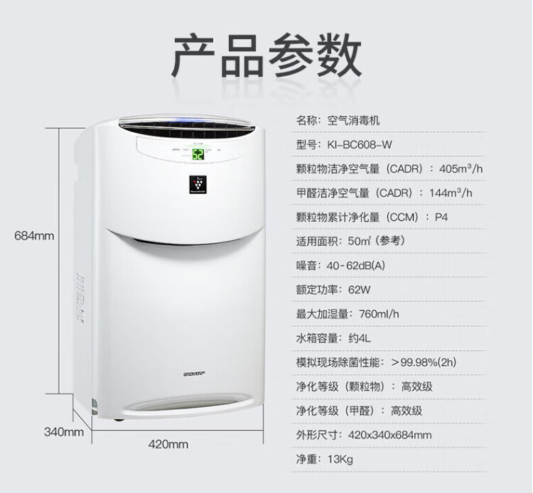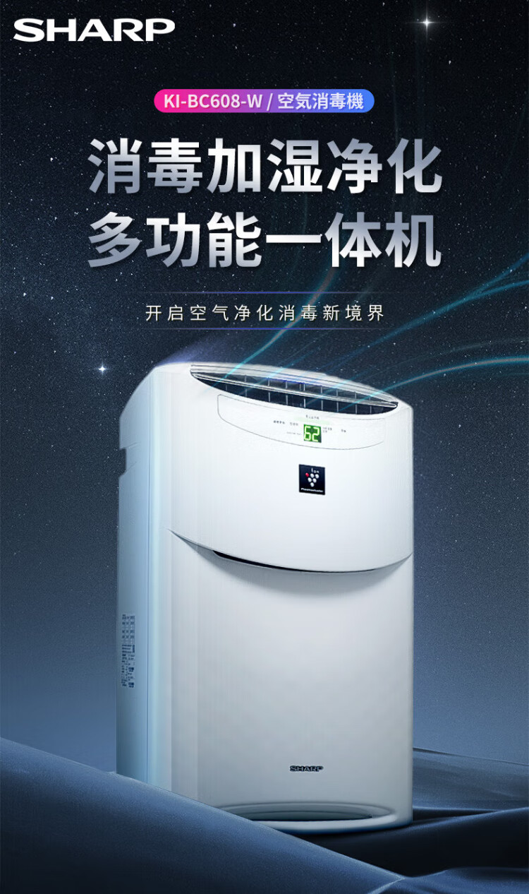 Sharp Air Purifier Health and Family Planning Commission certified air disinfection machine without fog, humidifying purification all-in-one, sterilization and haze, excessive allergy source Ki-BC608-W upgraded disinfection machine [25000 high concentration net ion group]
