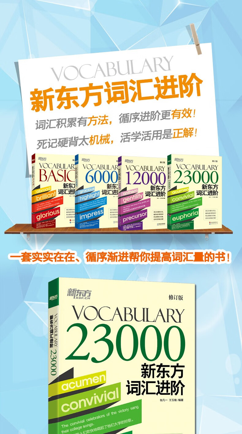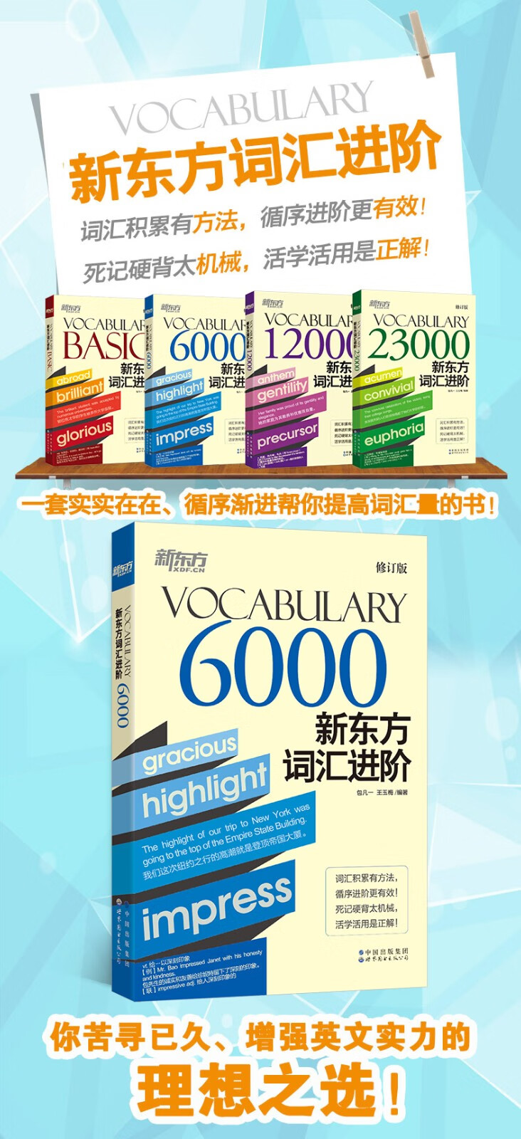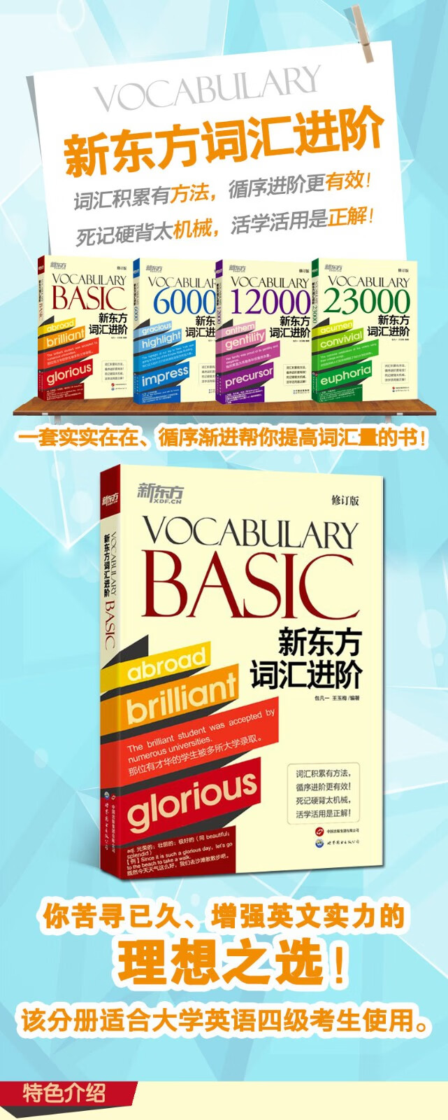 New Oriental Flagship New Oriental Vocabulary Advanced Vocabulary Basic+6000+12000+23000 A total of 4 books on core high-frequency words for level 4 and level 6 Junior high school and high school postgraduate entrance examination IELTS TOEFL vocabulary recitation New Oriental Vocabulary Advanced all four volumes
