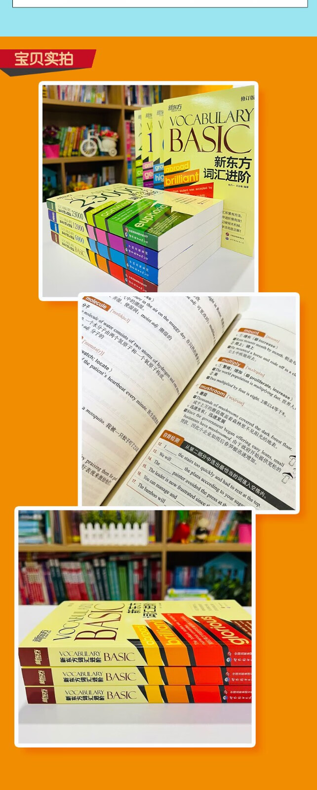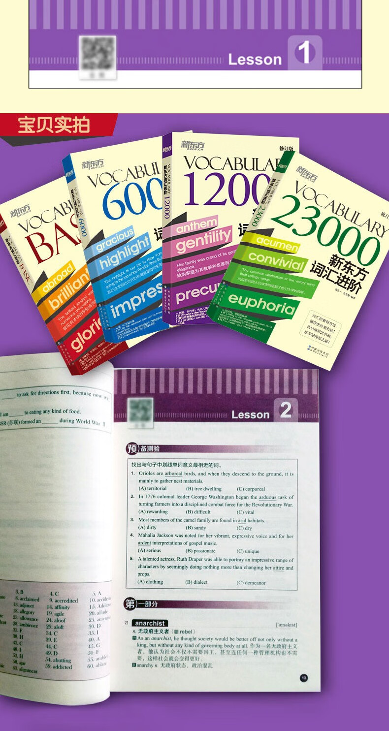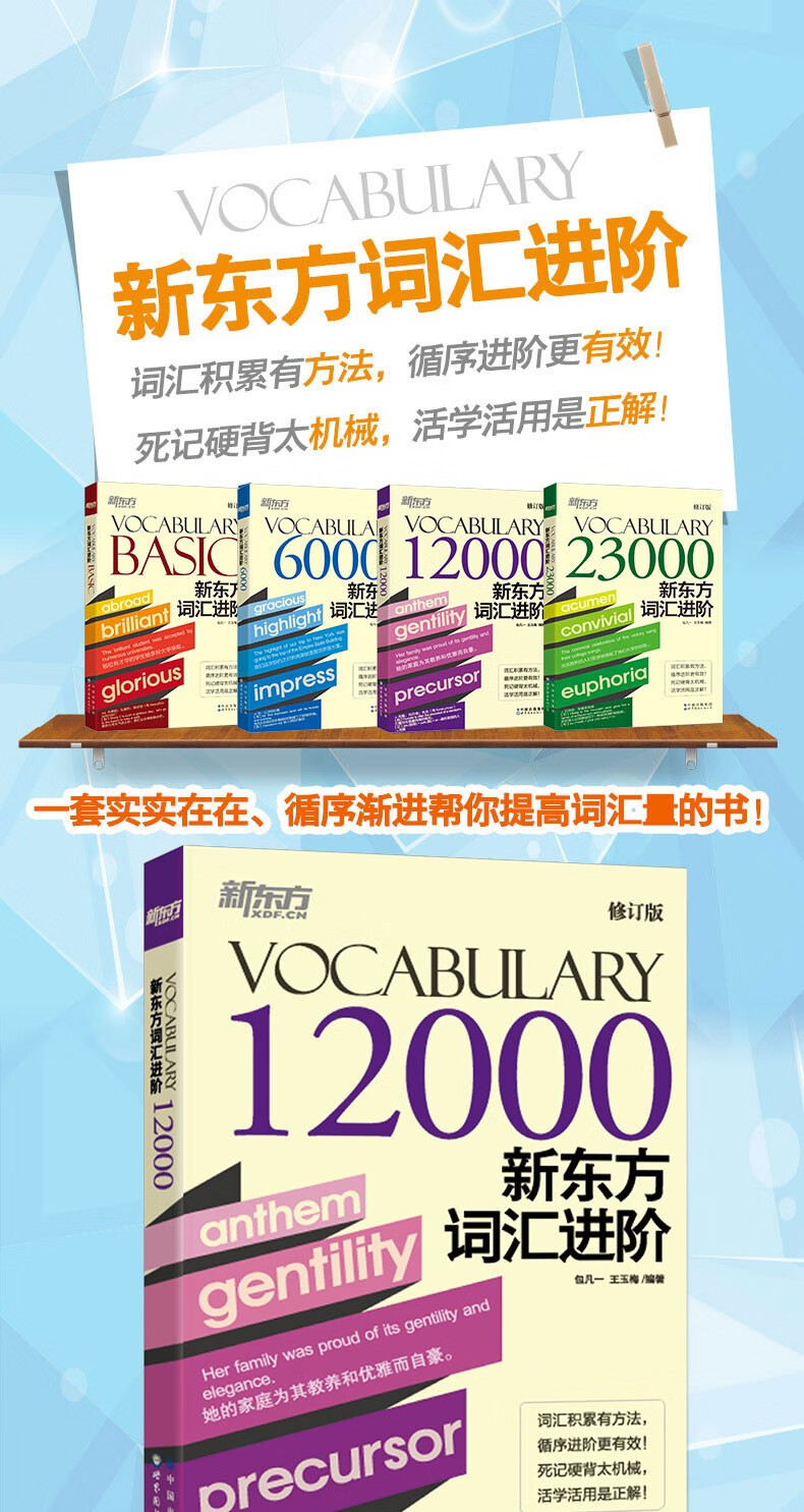 New Oriental Flagship New Oriental Vocabulary Advanced Vocabulary Basic+6000+12000+23000 A total of 4 books on core high-frequency words for level 4 and level 6 Junior high school and high school postgraduate entrance examination IELTS TOEFL vocabulary recitation New Oriental Vocabulary Advanced all four volumes