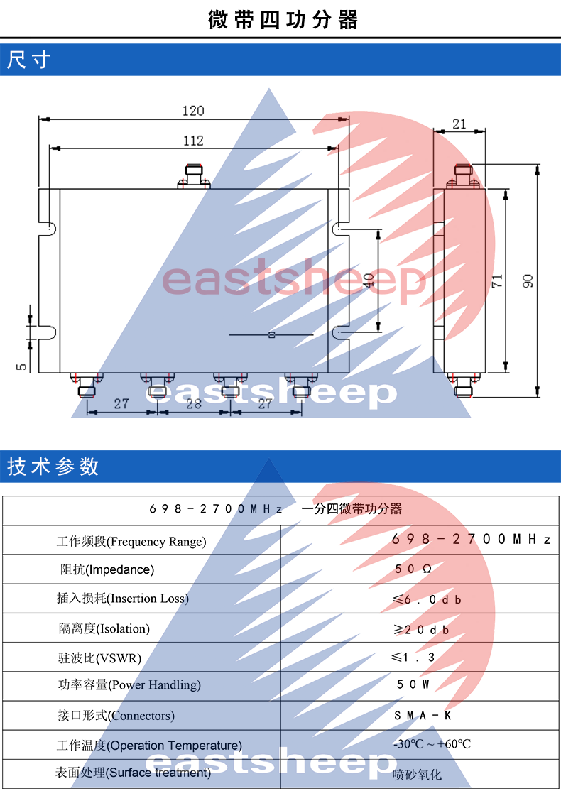 Dongfang Xupu 698-2700MHZ microstrip one-to-four power splitter SMA-K interface