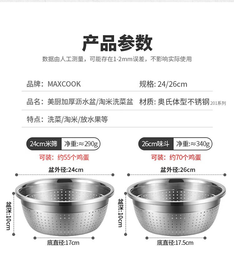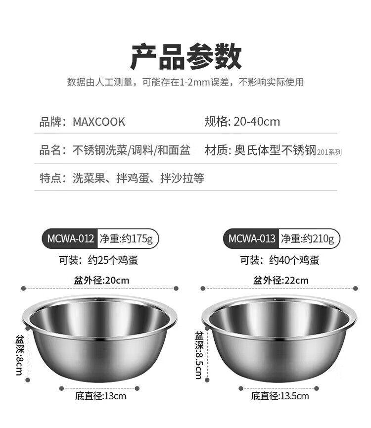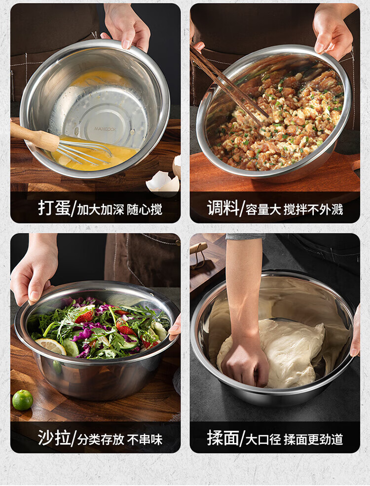 Meichu (MAXCOOK) vegetable pot seasoning pot flavor bucket thickened stainless steel noodles washing vegetables and salad marinated meat pot flavor bucket 20cm