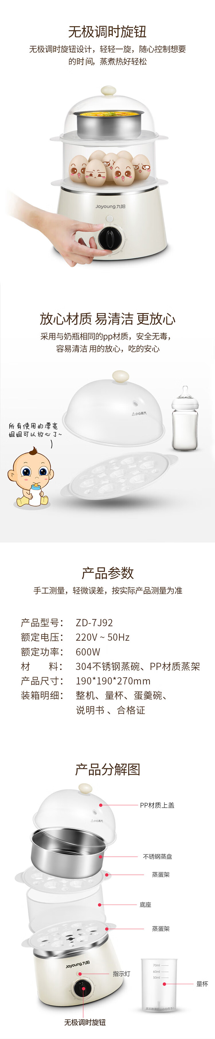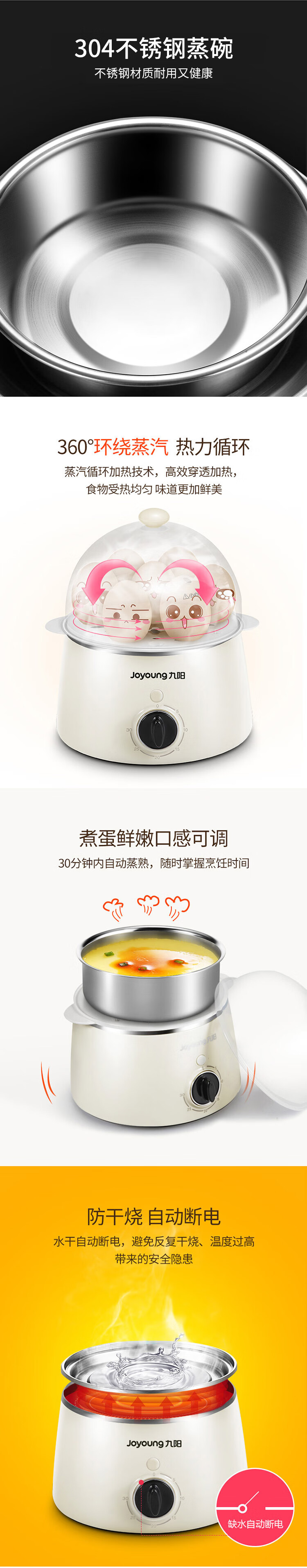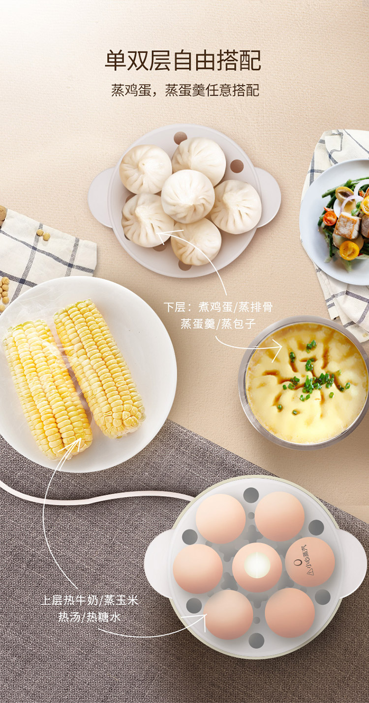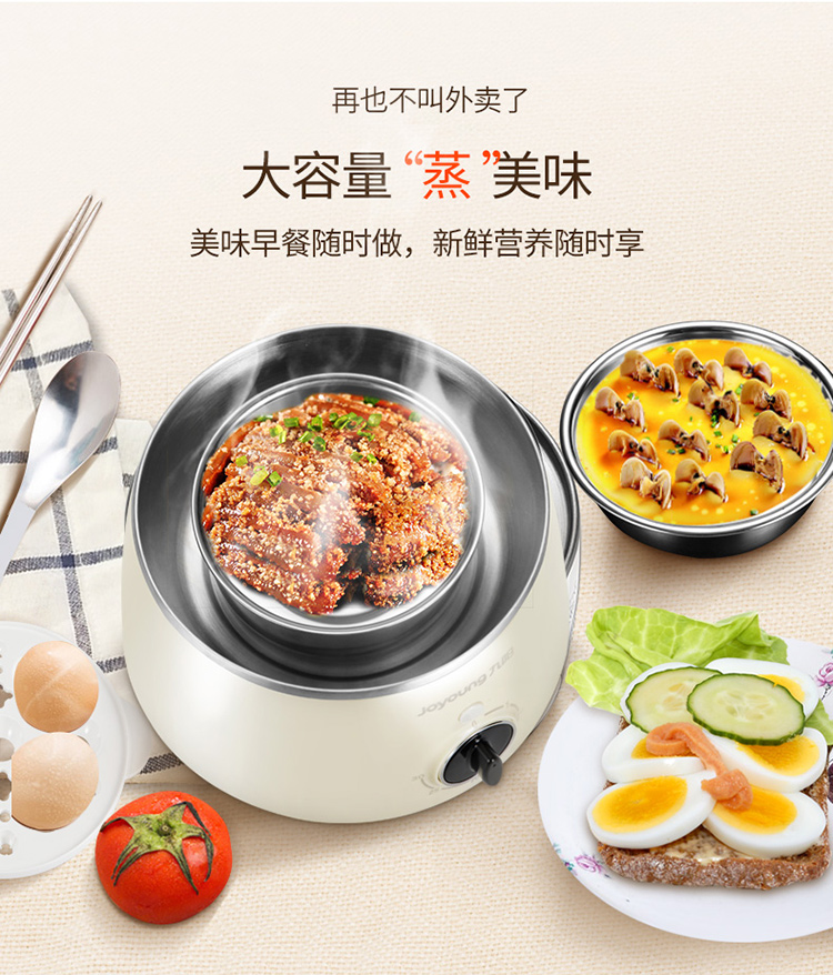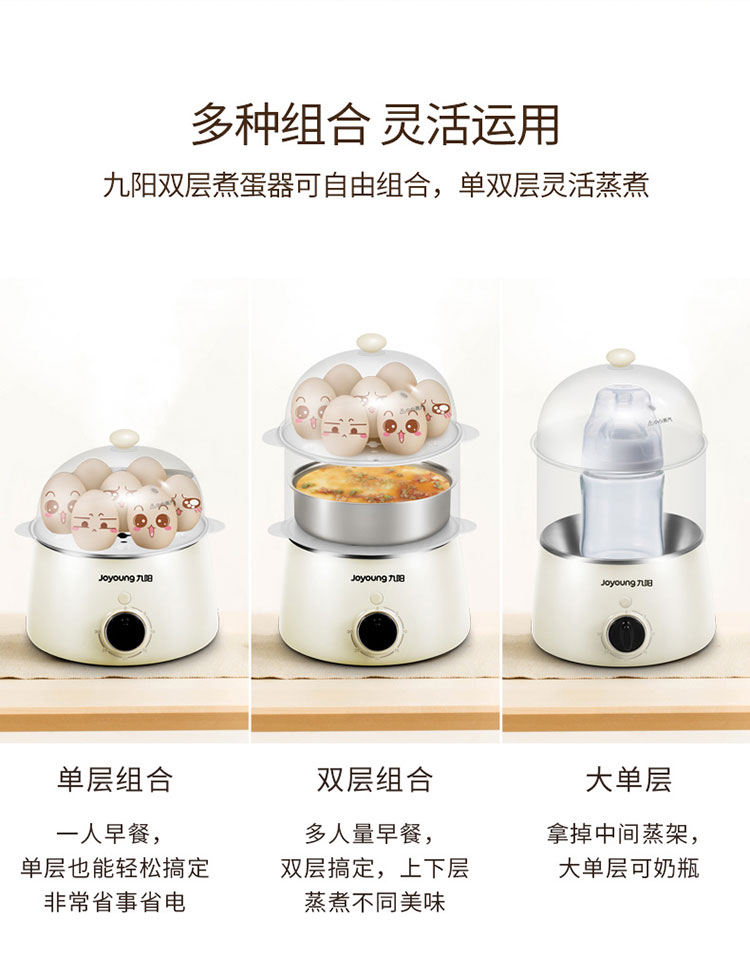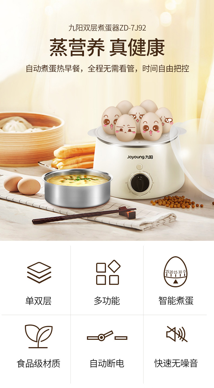 Joyoung egg cooker breakfast egg steamer multifunctional single and double layer automatic power off to prevent dry cooking, can cook 7 eggs ZD-7J92