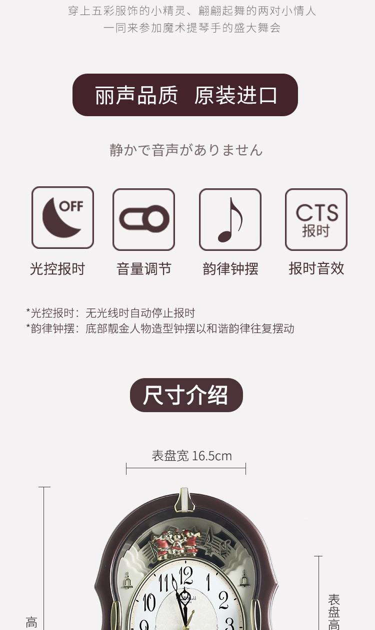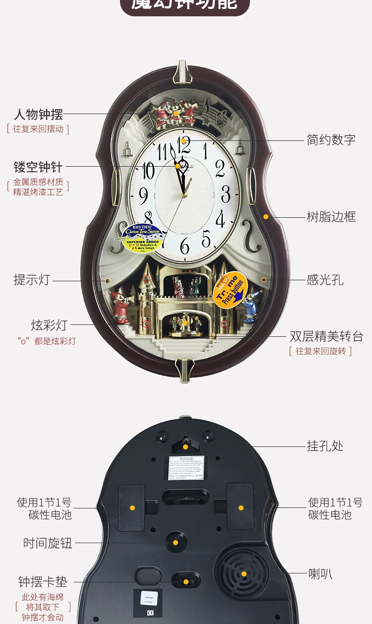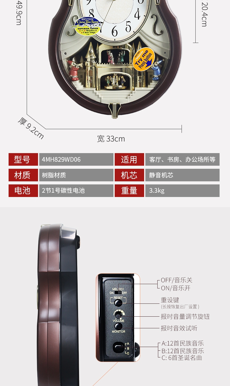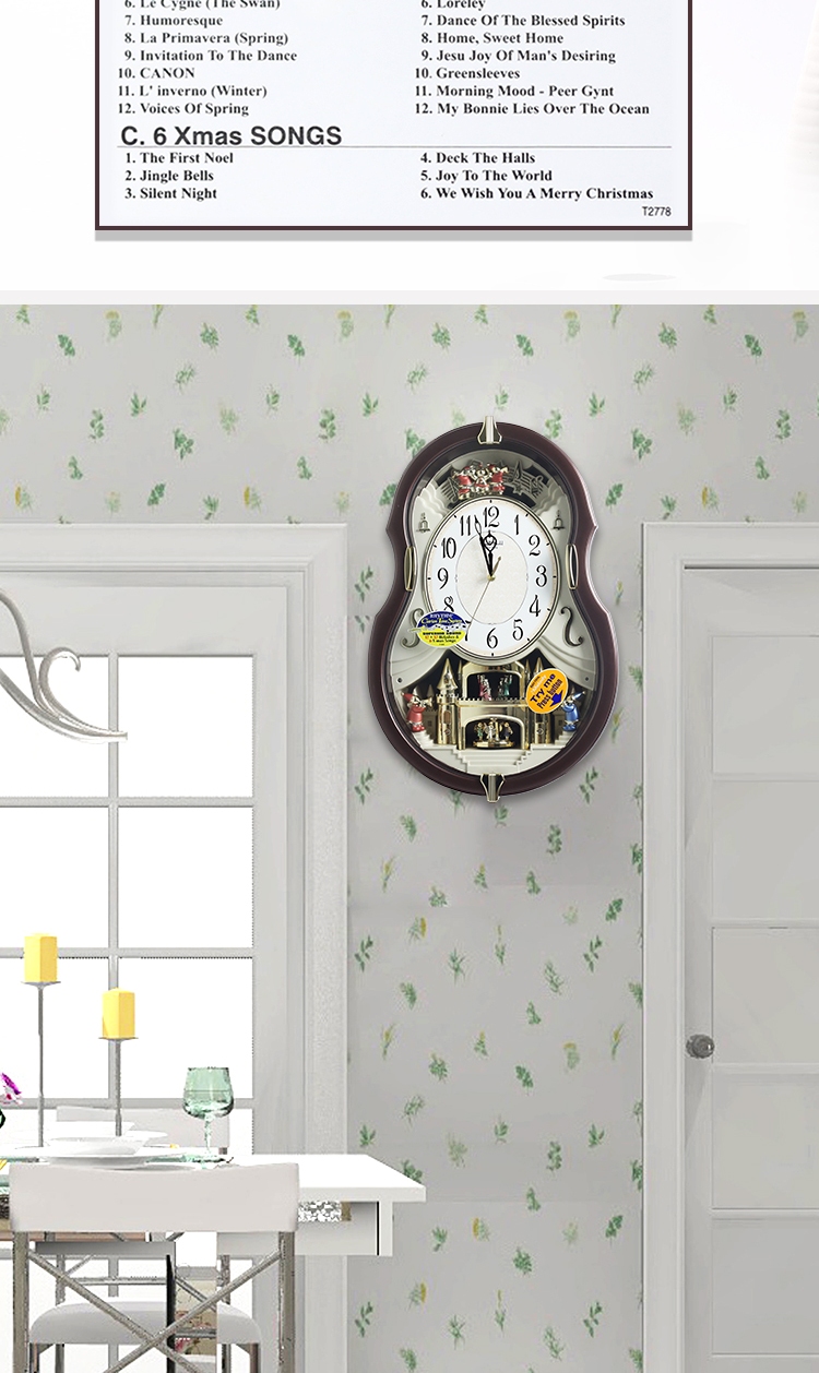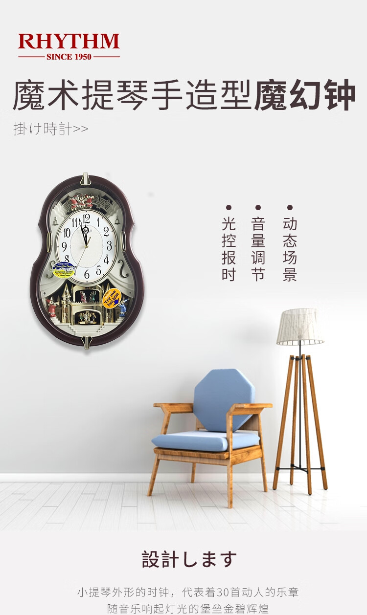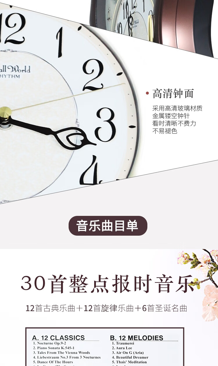 RHYTHM music time wall clock European watch wall hanging pastoral creative living room decoration clock 49.9cm 4MH829WD06