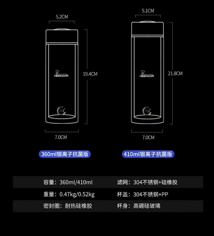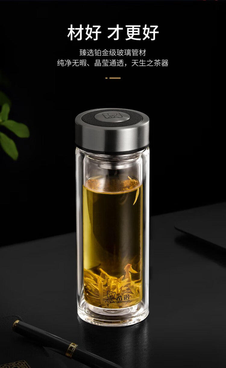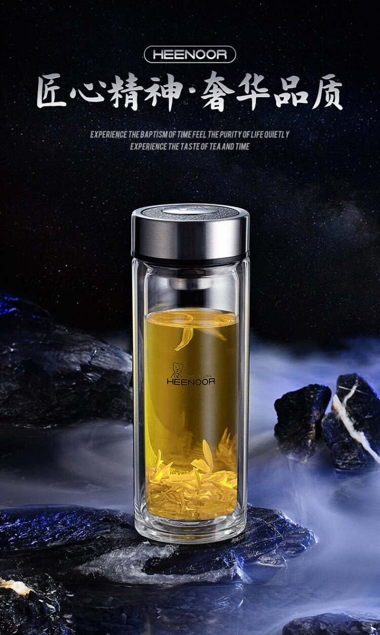 HEENOOR double-layer glass men's home business office tea cup filter car water cup XN-9302 345mL