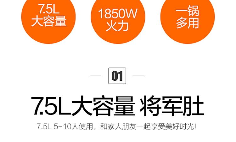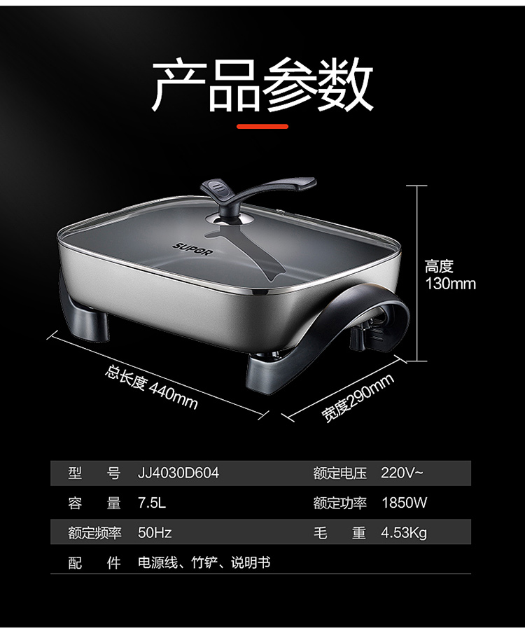 SUPOR electric hot pot household multifunctional electric wok electric pan electric pan frying machine 7.5L large capacity electric cooking pot JJ4030D604