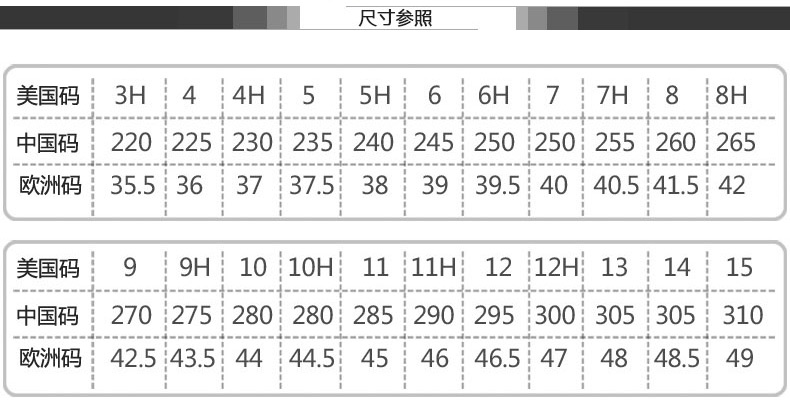 China (cm) 36 - 37 38 - 39 40 - 42 43 - 44 45 - 47