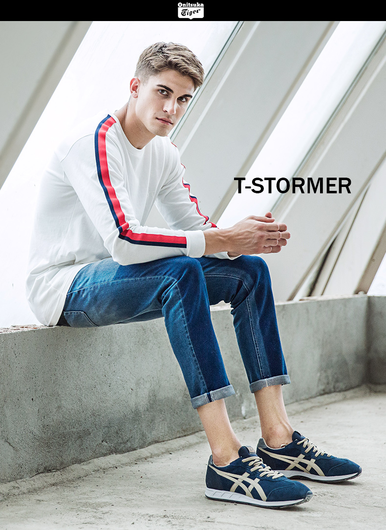 Onitsuka Tiger D430L-2550 lightweight sports and leisure retro jogging shoes men T-STORMER navy blue/off-white 41.5