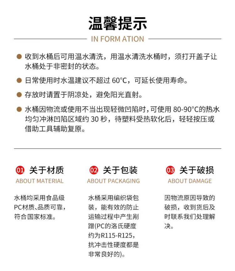 Baijie pure water bucket bottled water bucket mineral water bucket drinking machine tea table bar machine bucket portable 5L