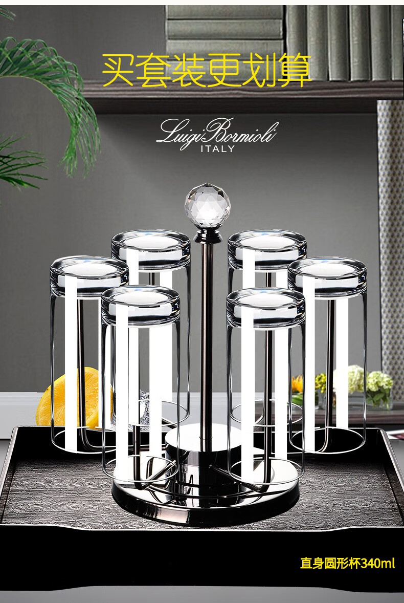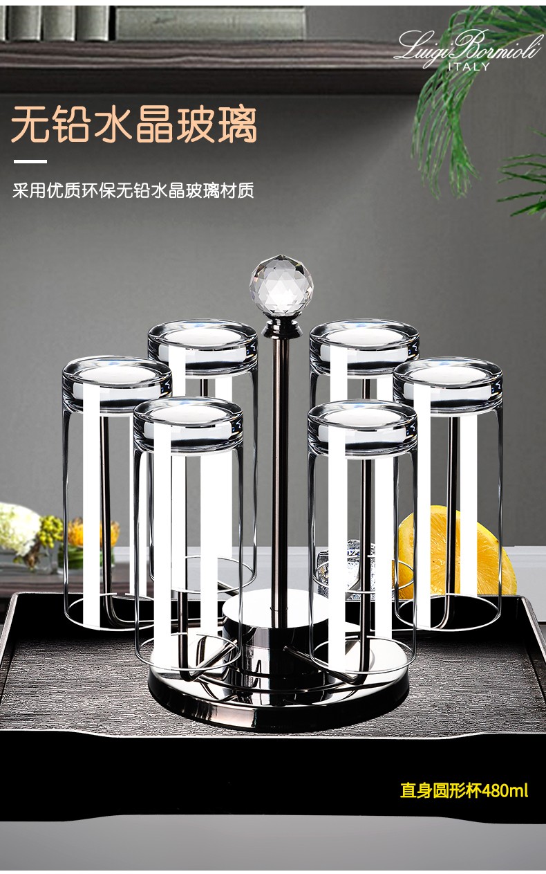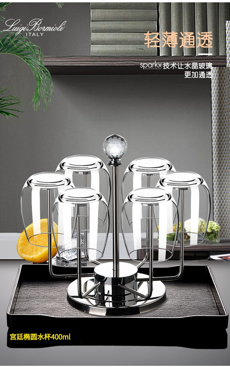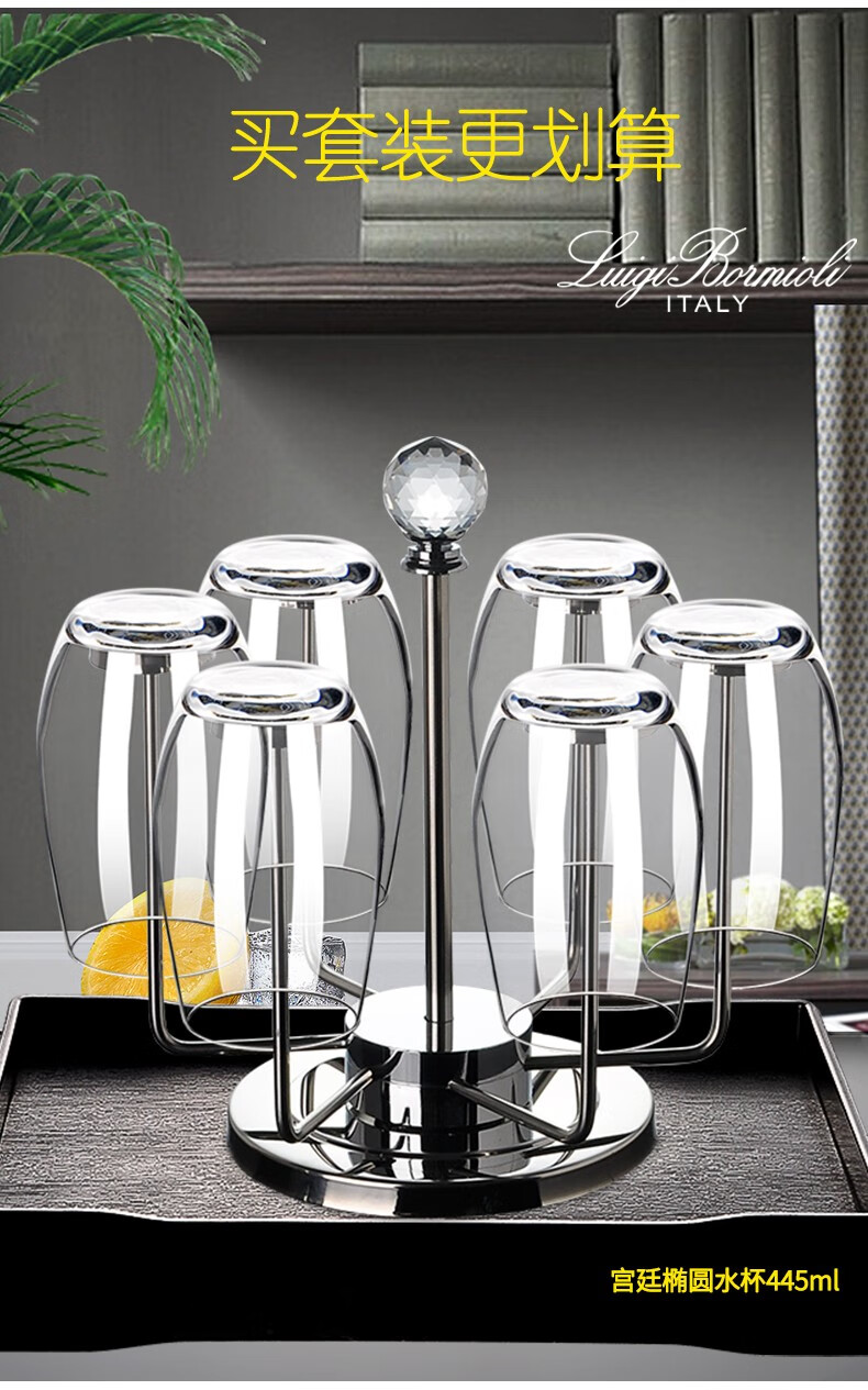 Louis J. Pomione Imported lead-free crystal glass cup household set water cup milk juice cup brew tea cup beer cup six palace oval water cup 445ML + cup holder tray transparent color