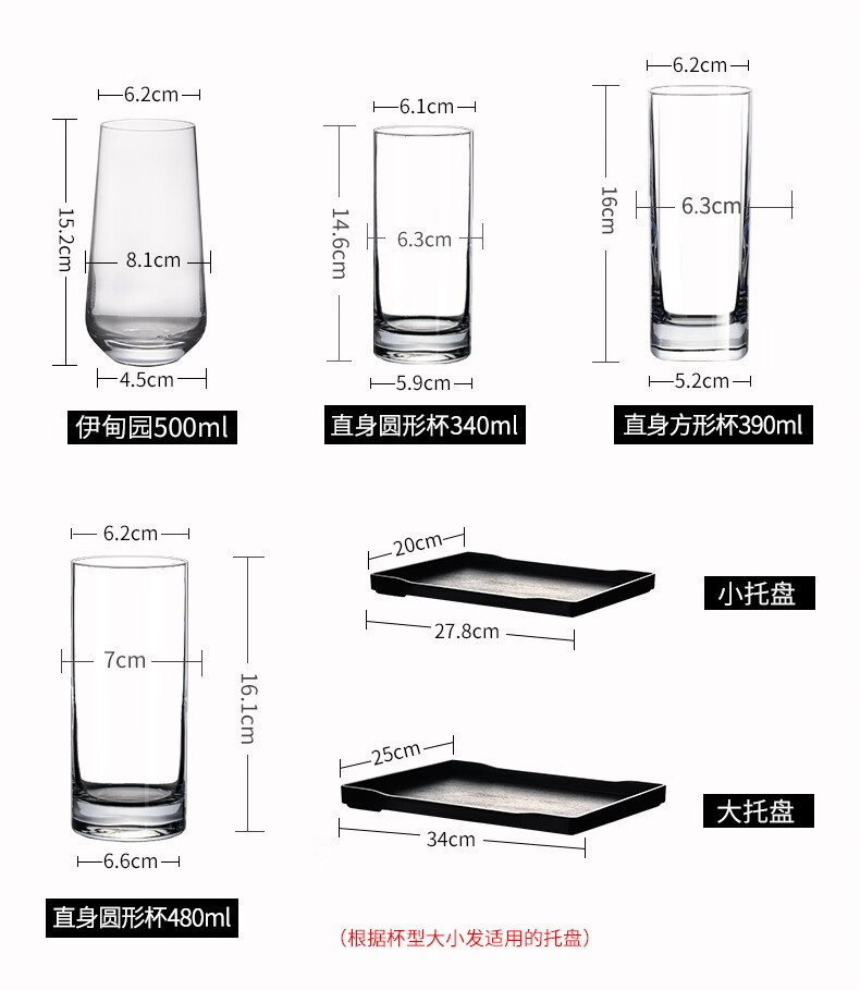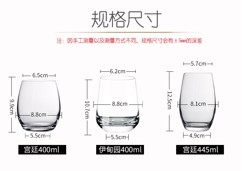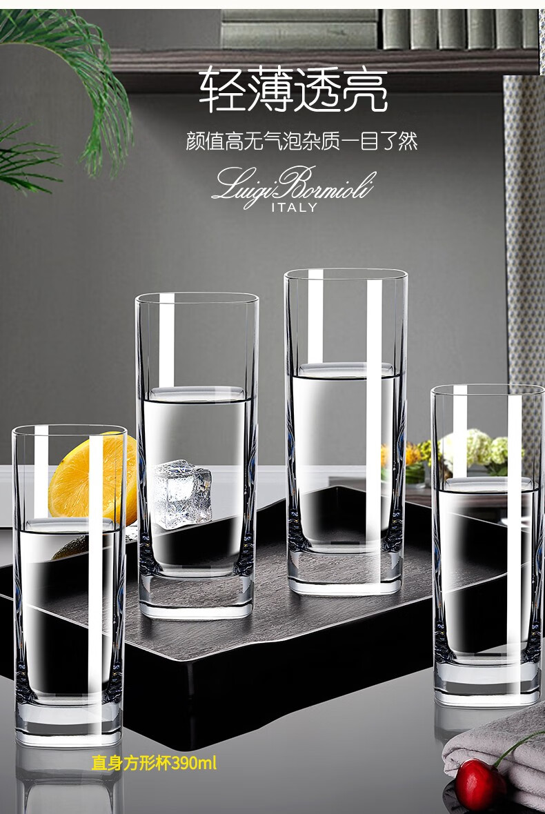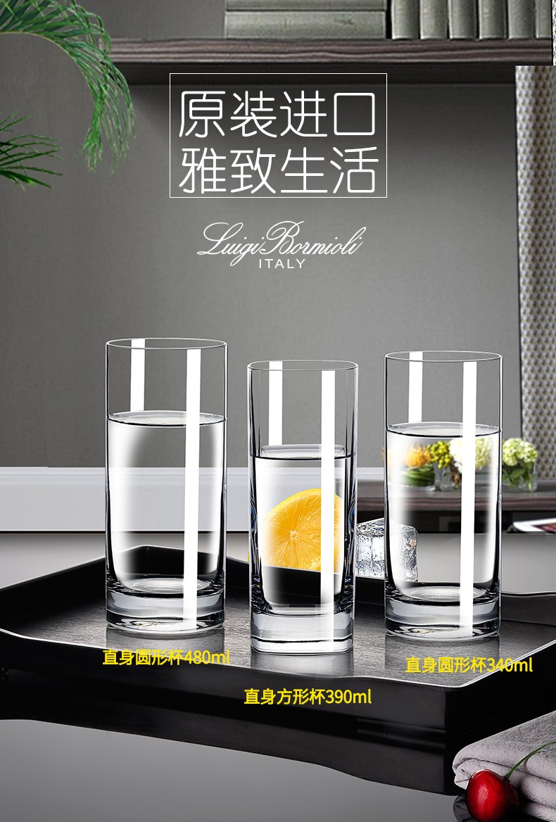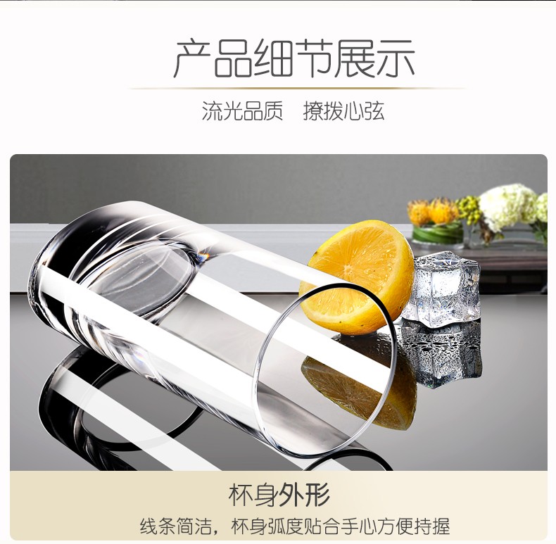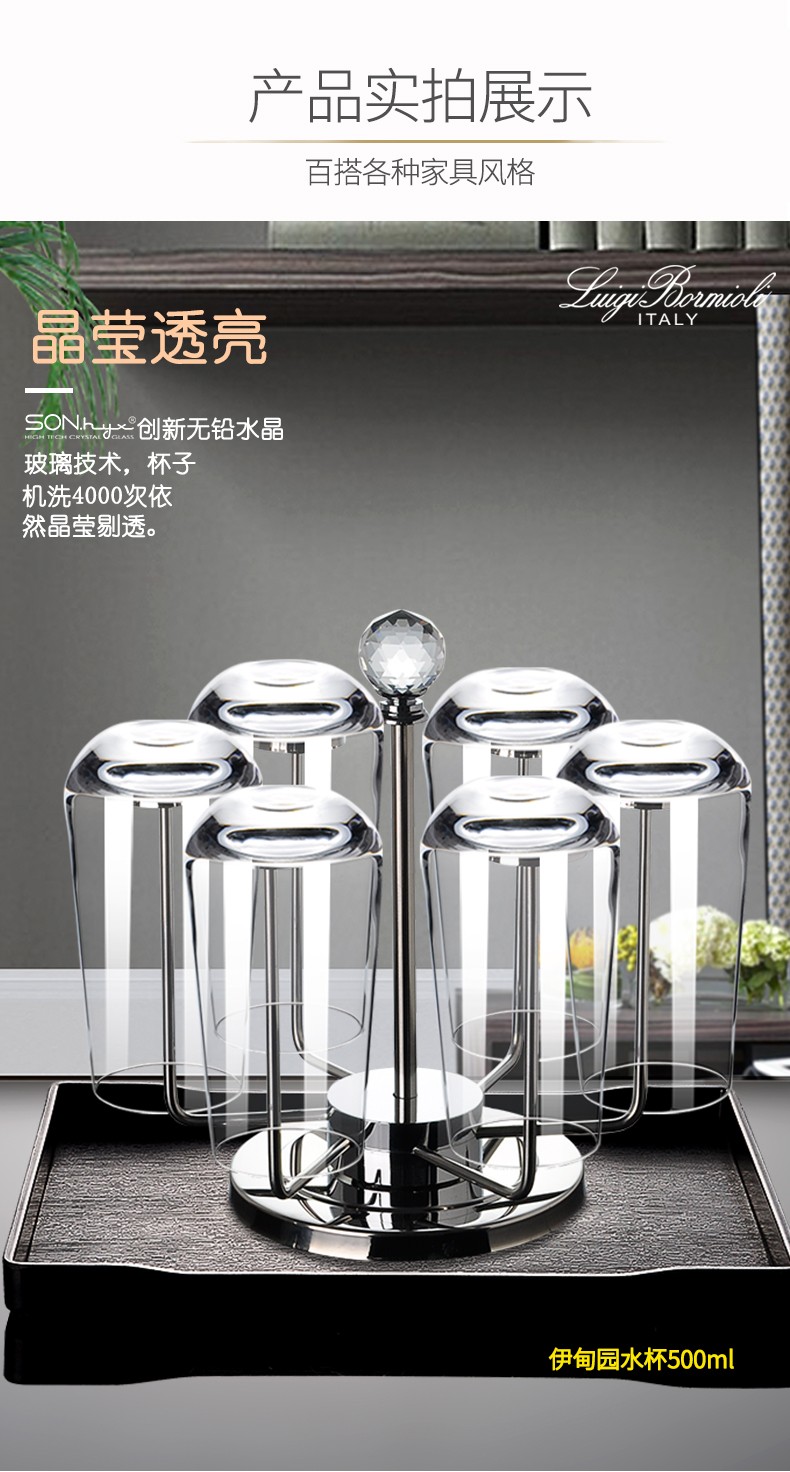 Louis J. Pomione Imported lead-free crystal glass cup household set water cup milk juice cup brew tea cup beer cup six palace oval water cup 445ML + cup holder tray transparent color