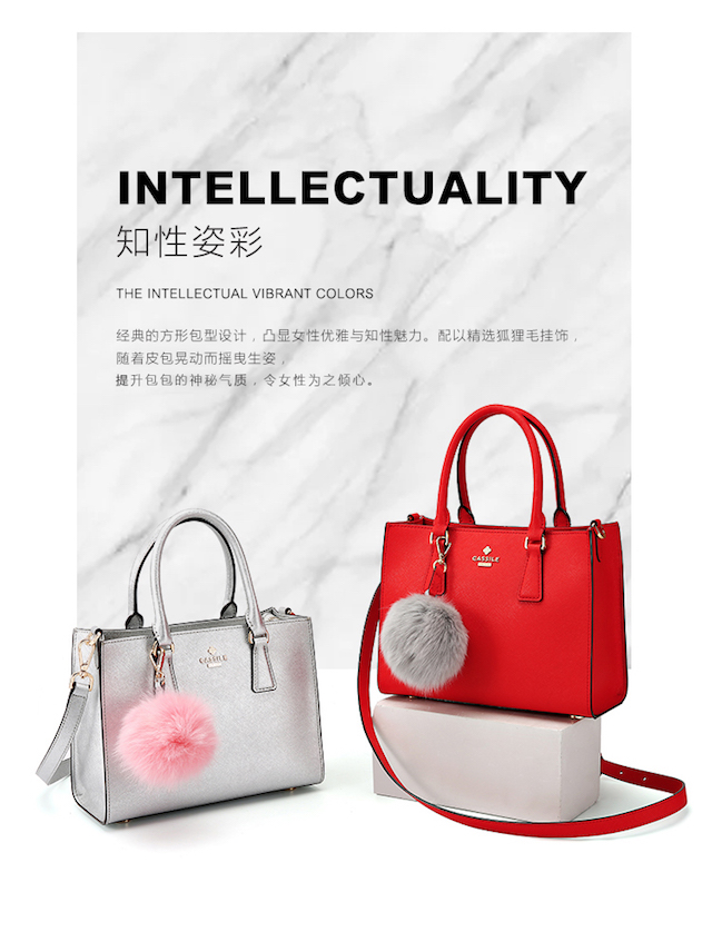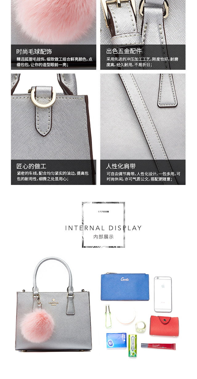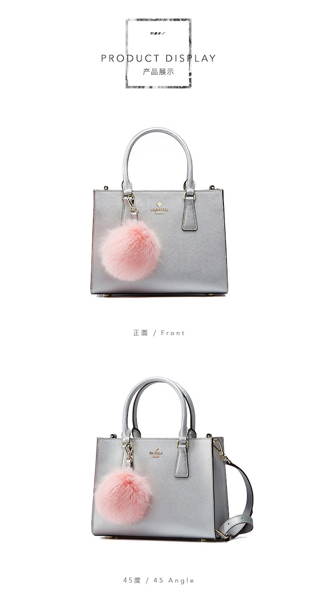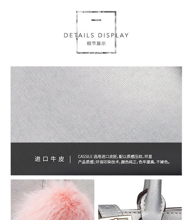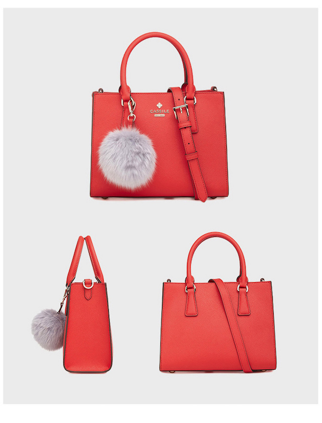 Cassile (cassile) European and American bag cross pattern cowhide fur ball intellectual handbag T171010102B6 orange red